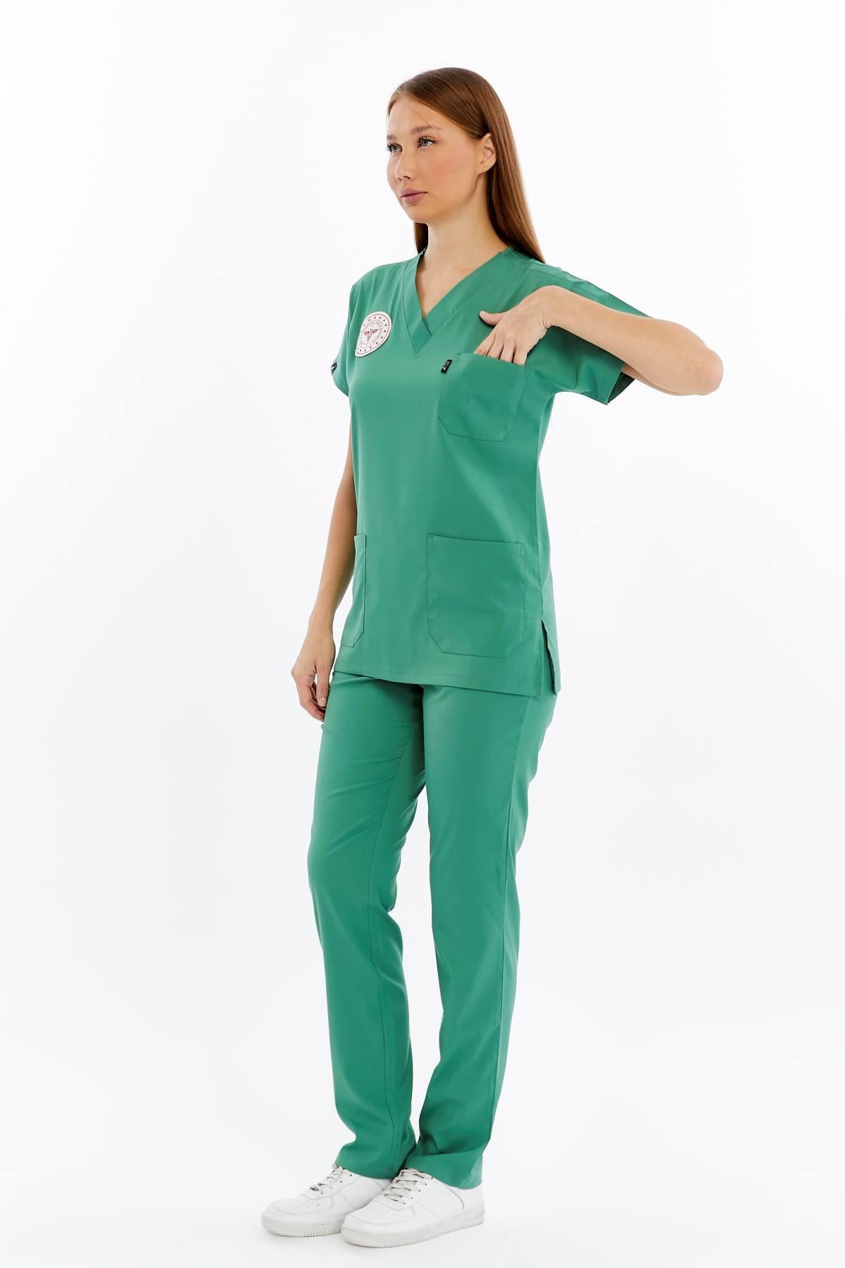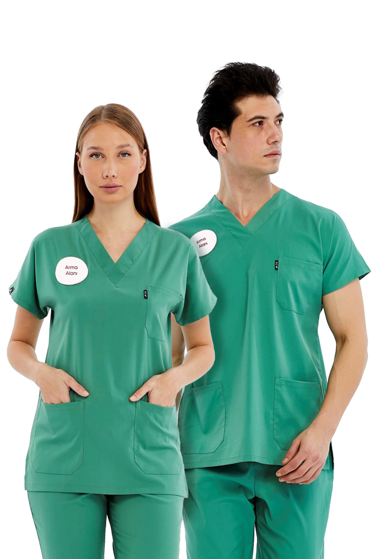 Basic - Ameliyathane Hizmetleri Forması Likralı Scrubs (Unisex) (Yeni Yönetmeliğe Uygun - Frosty Spruce) (Takım) (CATI16149)