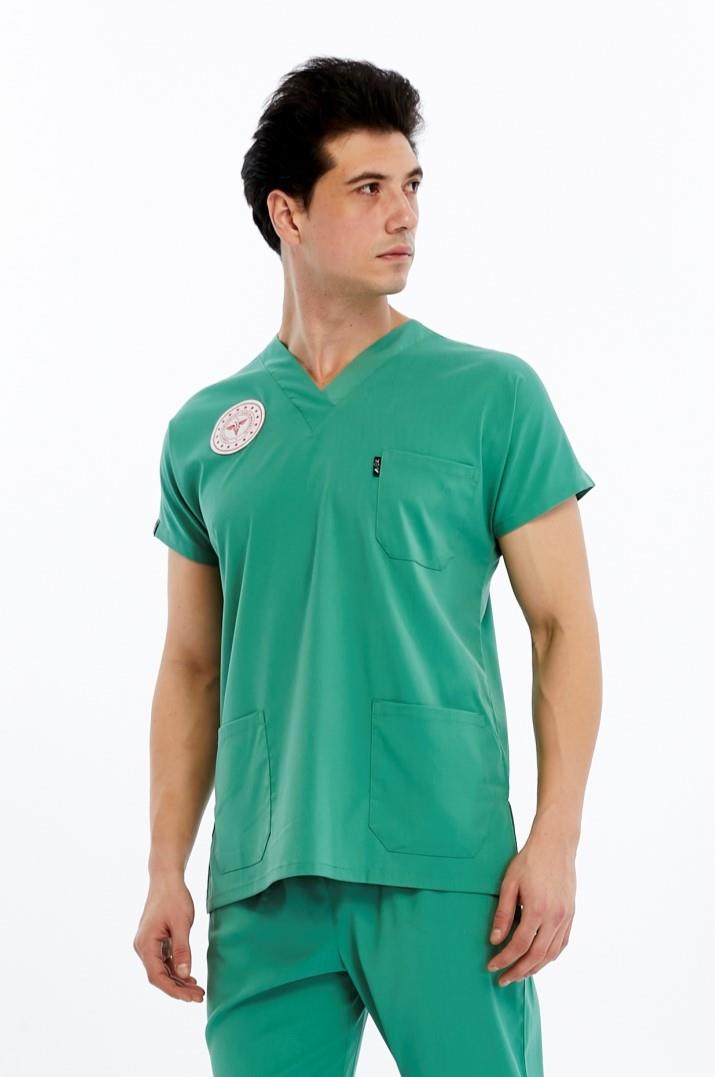 Basic - Ameliyathane Hizmetleri Forması Likralı Scrubs (Unisex) (Yeni Klavuz - Frosty Spruce) (Tek Üst) (1ACATI26149)
