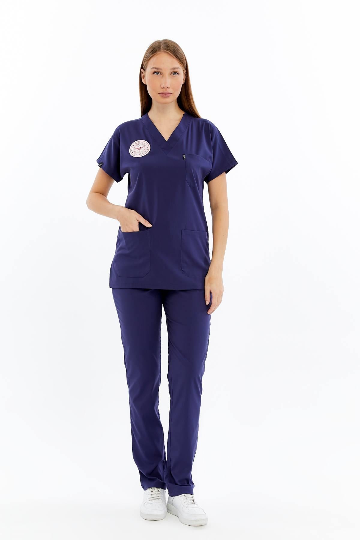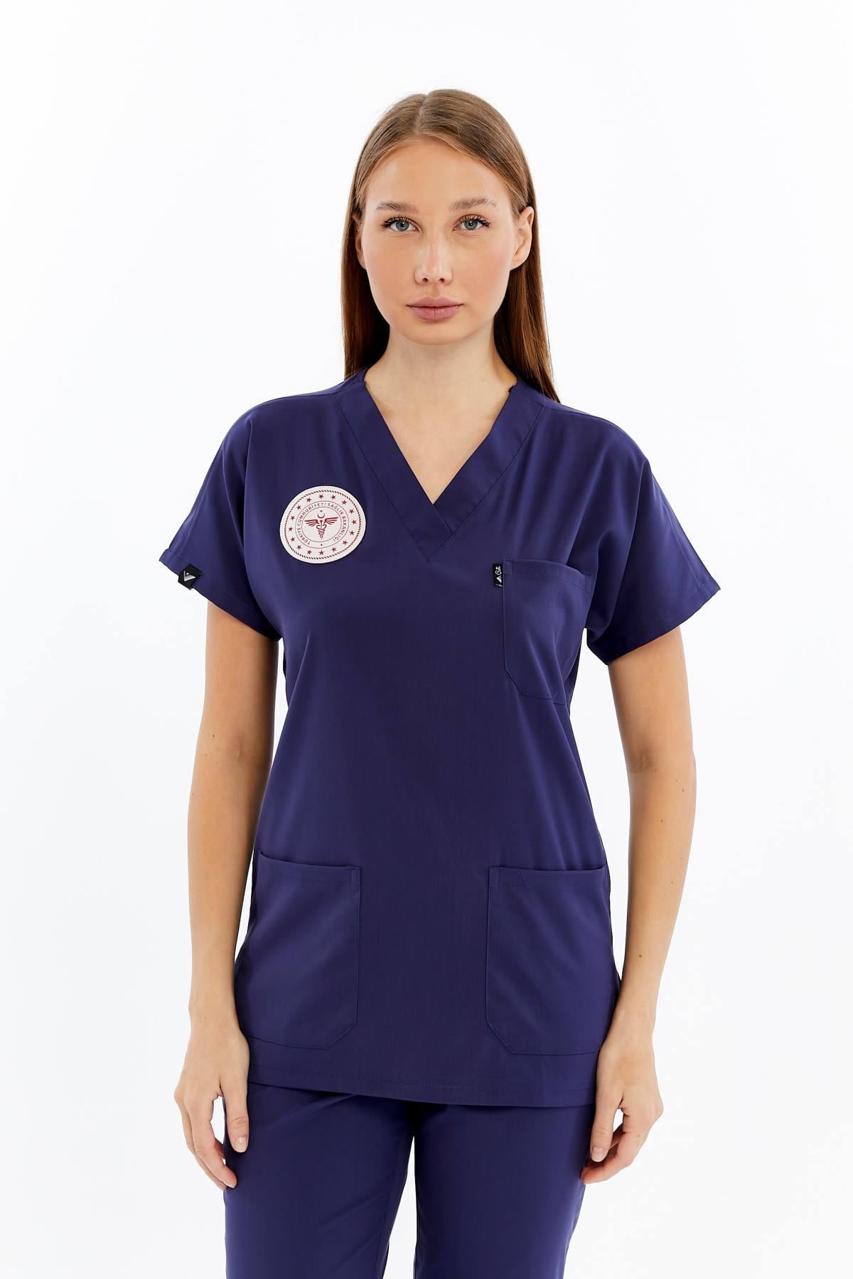 Basic - Hemşire Forması Likralı Scrubs (Unisex) (Yeni Yönetmeliğe Uygun - Patriot Blue) (Takım) (CATI16145)