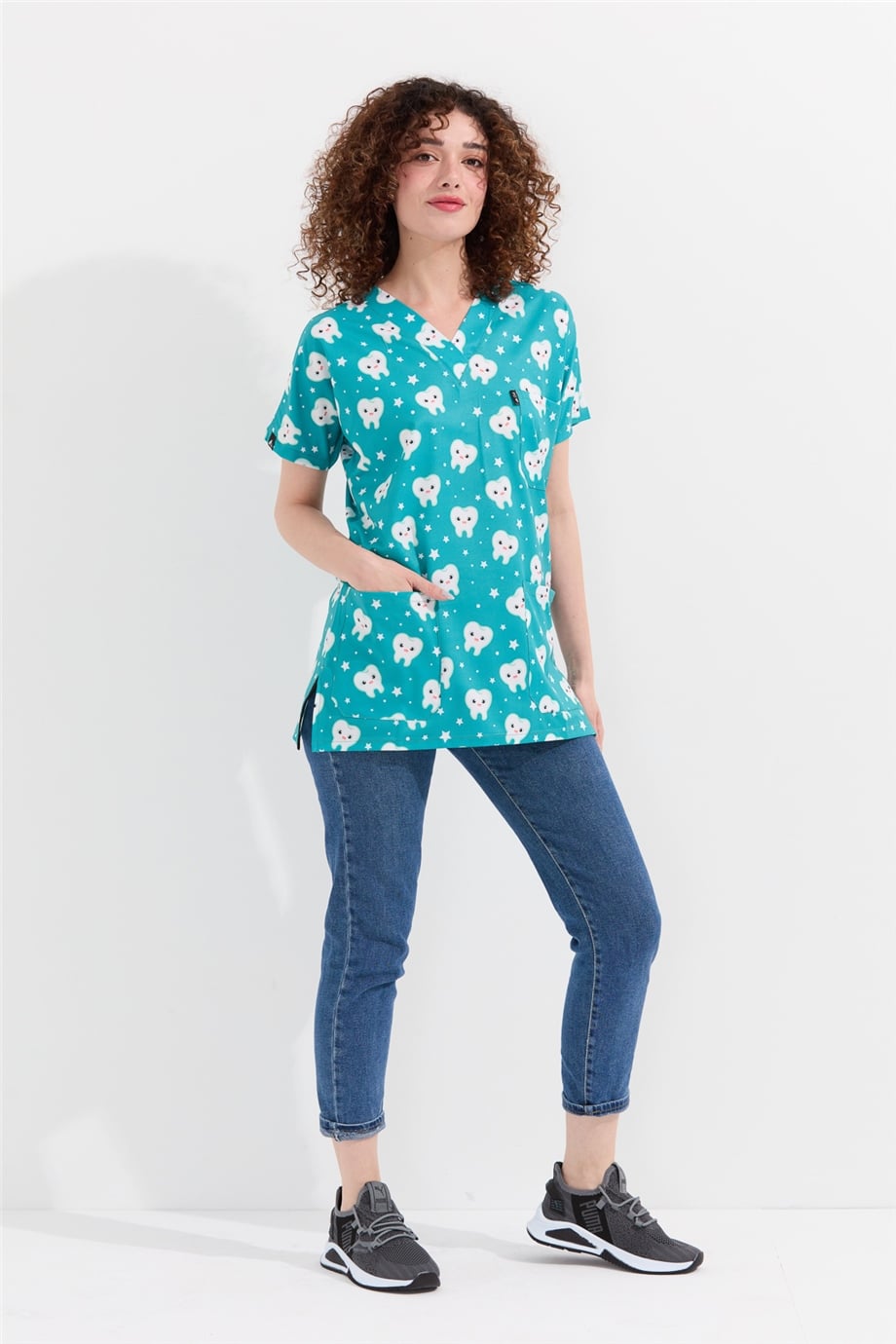 Carnival Basic - Desenli Hemşire Doktor Veteriner Tek Üst Forma (UNISEX) / Diş (CATI26010)