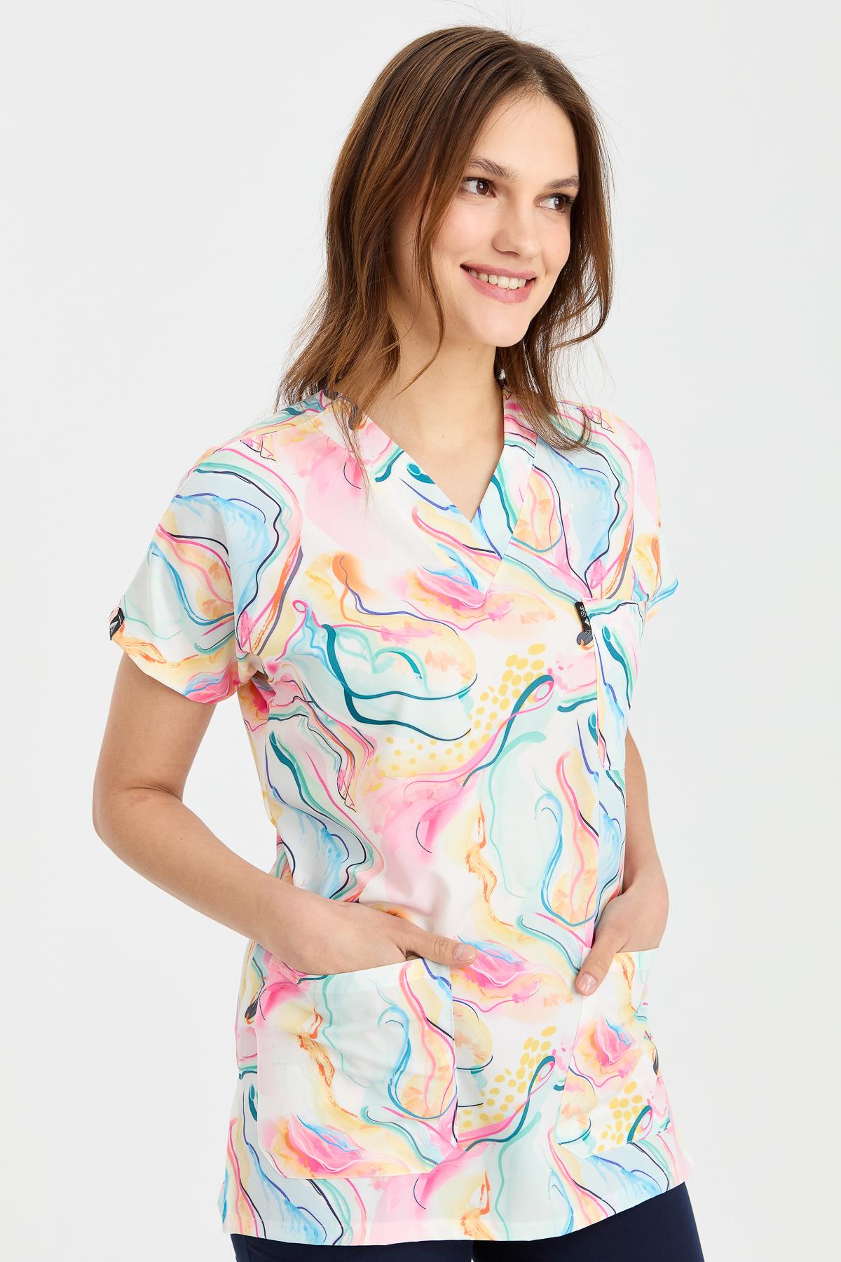 Carnival Basic - Desenli Hemşire Doktor Veteriner Tek Üst Forma (UNISEX) / Marble (1ACATI26012)