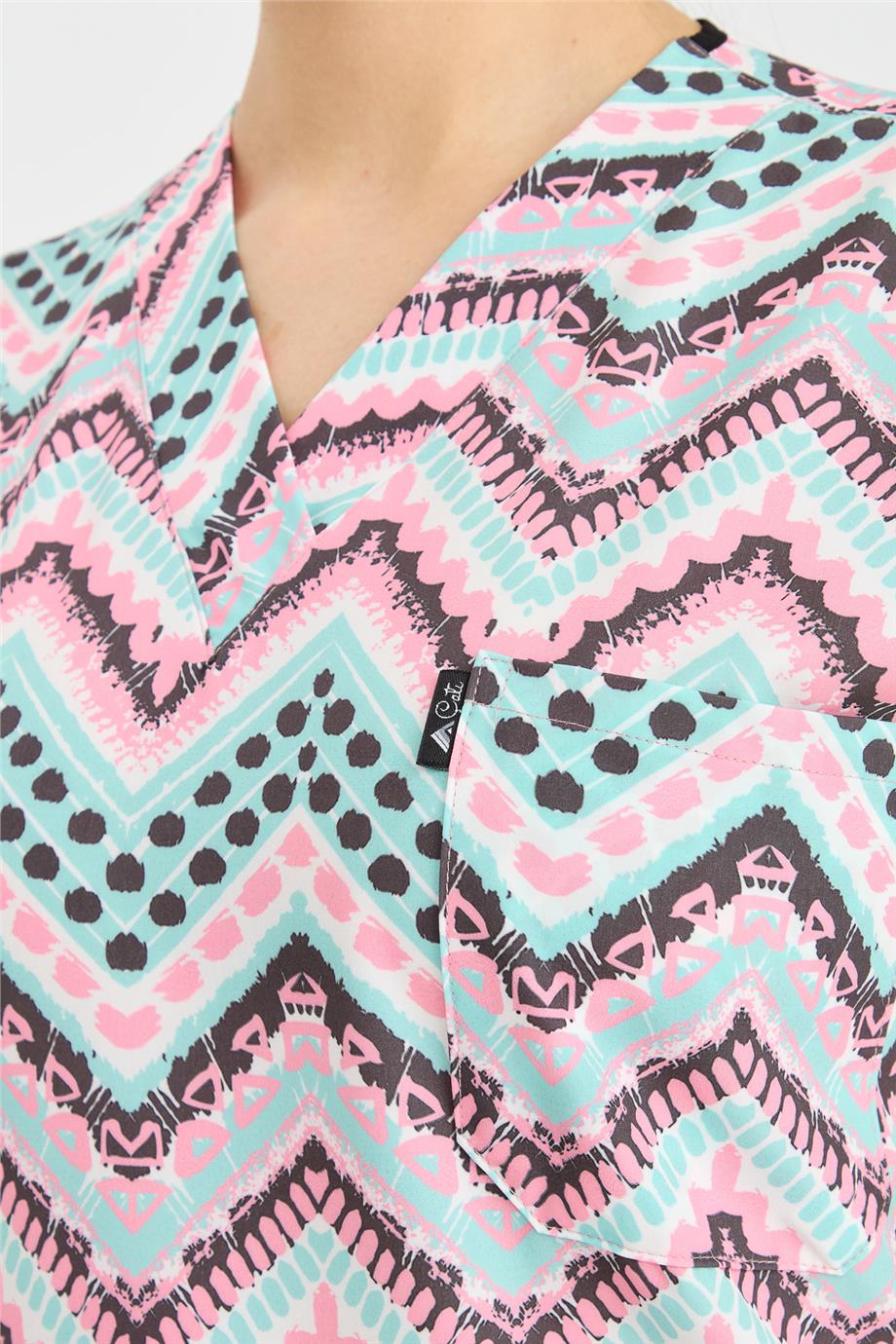 Carnival Basic - Desenli Hemşire Doktor Veteriner Tek Üst Forma (UNISEX) / Etnik (CATI26019)