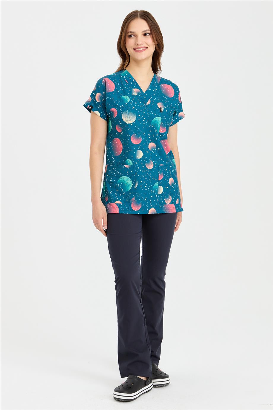 Carnival Basic - Desenli Hemşire Doktor Veteriner Tek Üst Forma (UNISEX) / Samanyolu (CATI26015)