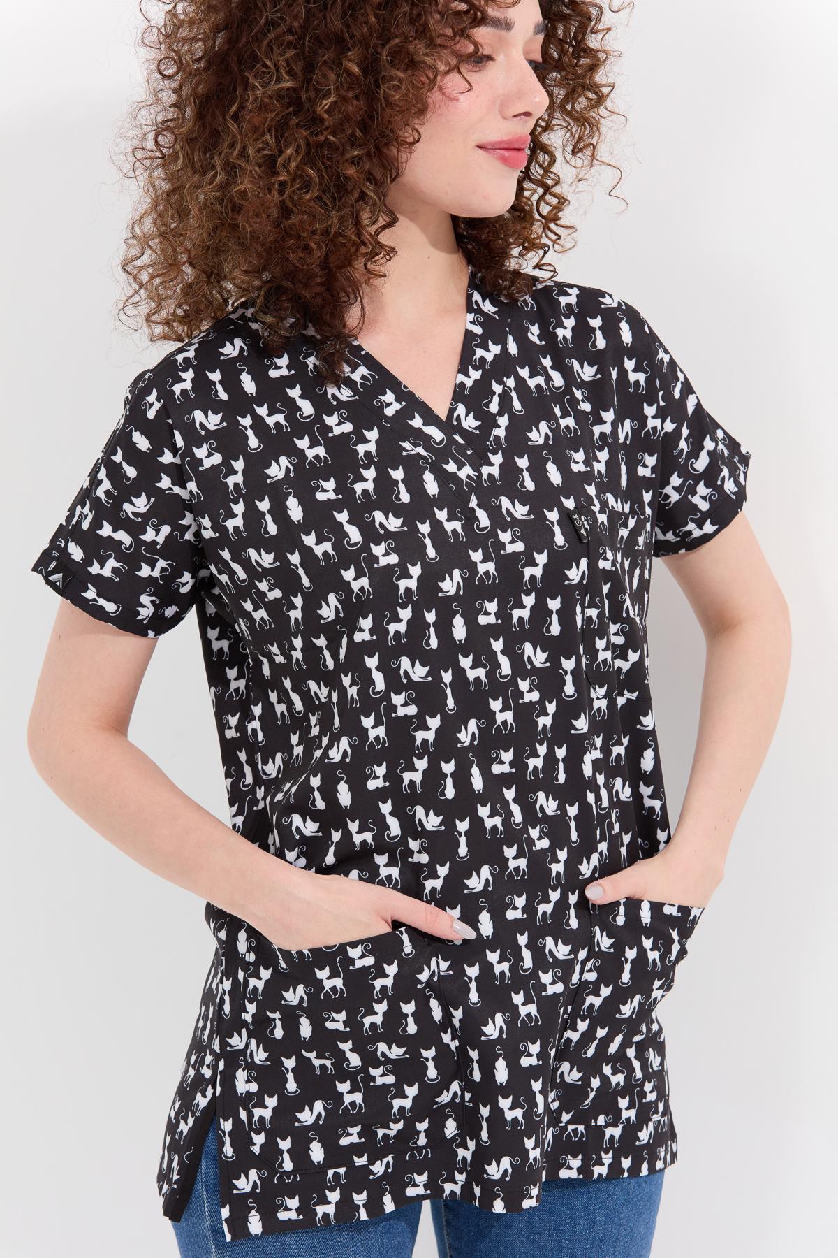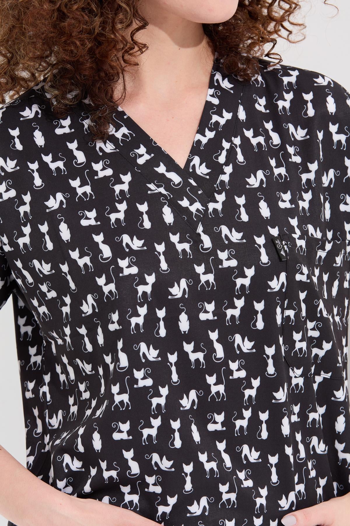 Carnival Basic - Desenli Hemşire Doktor Veteriner Tek Üst Forma (UNISEX), Kedi (1ACATI26008)