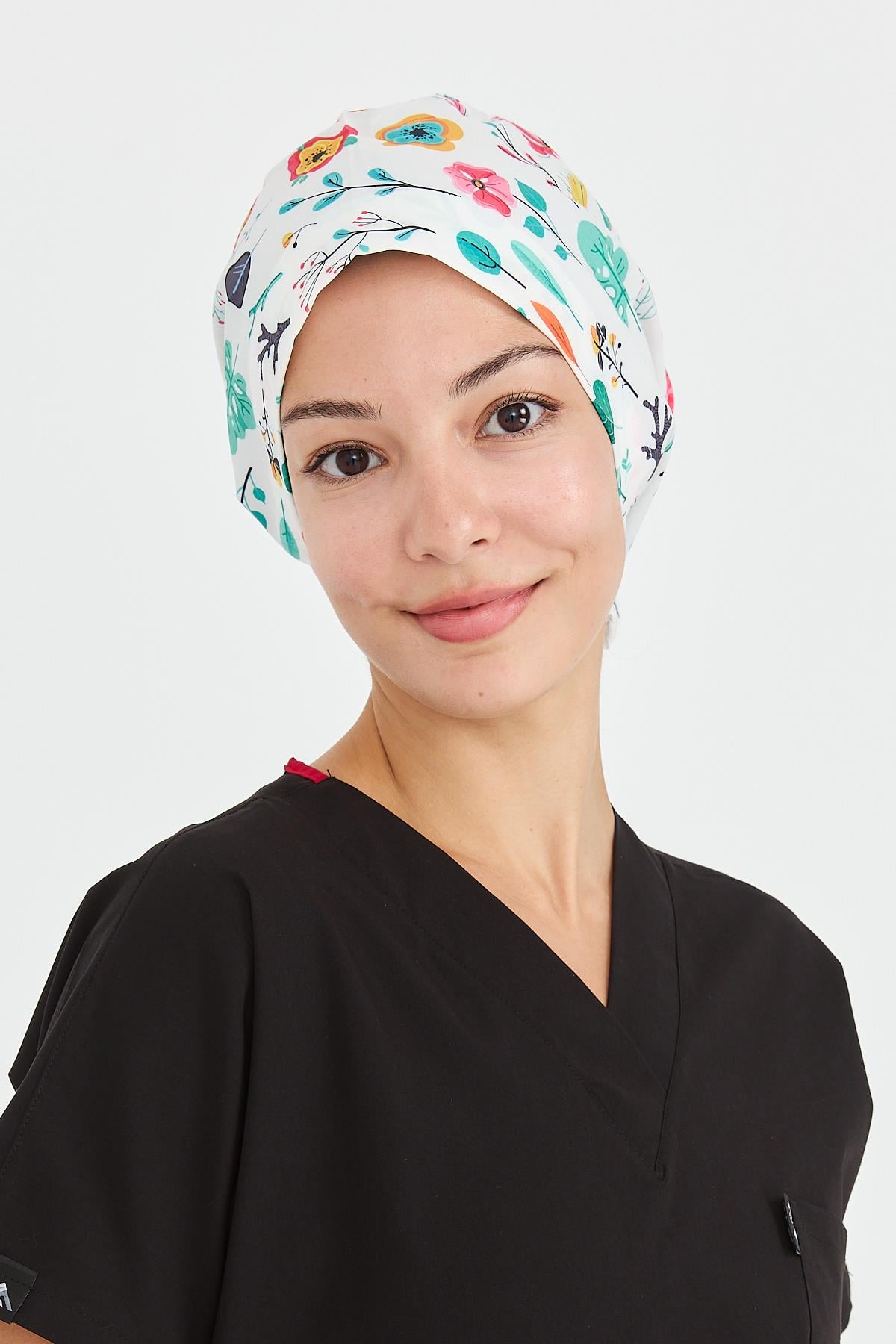 Carnival Doktor Hemşire Cerrahi Bone Aşçı Bonesi İş Bandanası, Sulu Boya Çiçek (CATI45207)