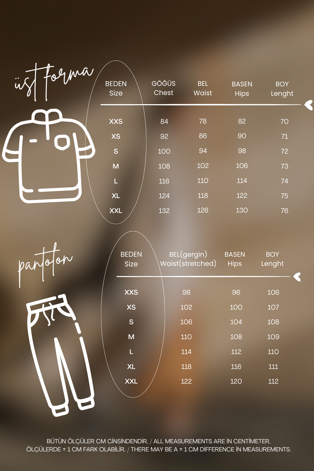 • Paket içeriği üst ve pantolon olarak 2 parçadan oluşur.