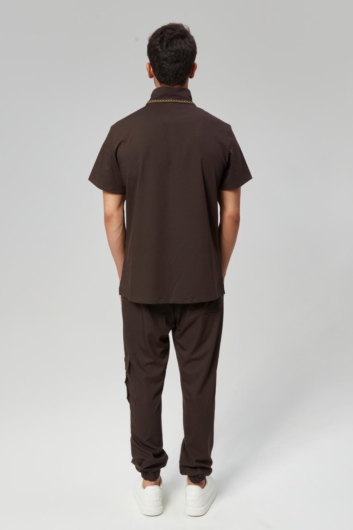 Extreme Cool Man - Premium Çift Yön Likralı Doktor Hemşire Forma Takımı Scrubs Üniforma Cerrahi Takım (ERKEK), Acı Kahve (CATI16943)