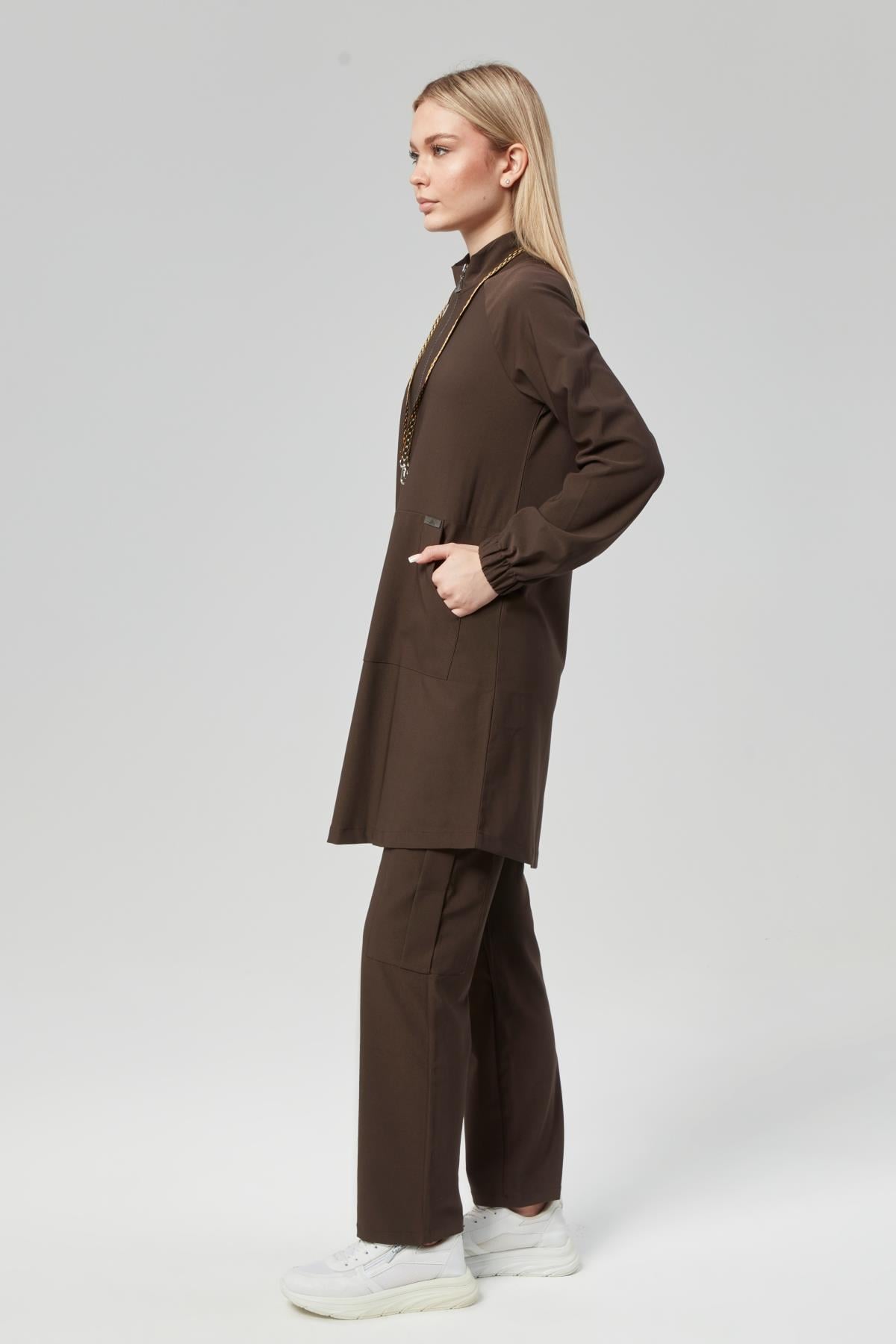 Extreme Cool Modest - Premium Çift Yön Likralı Doktor Hemşire Forma Takımı (KADIN), Acı Kahve (1ACATI13943)