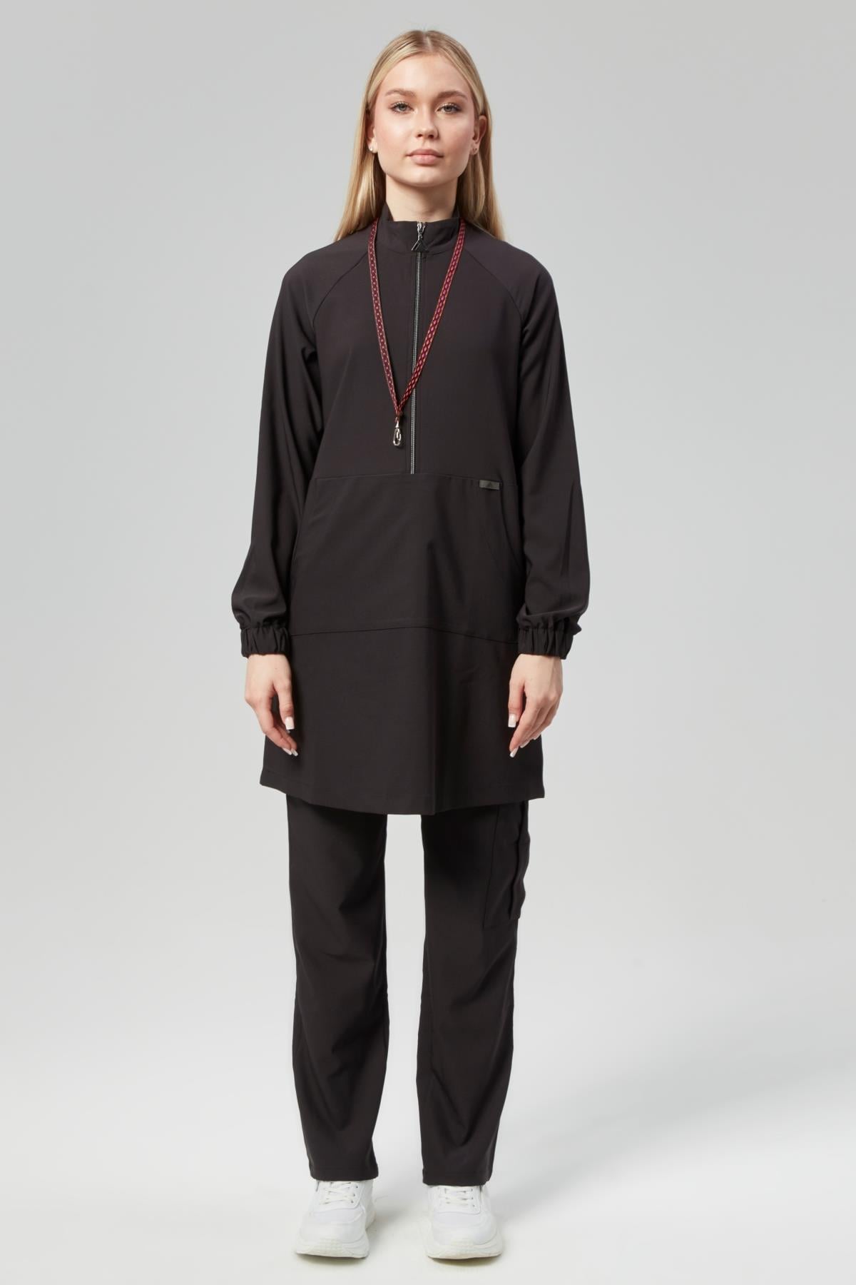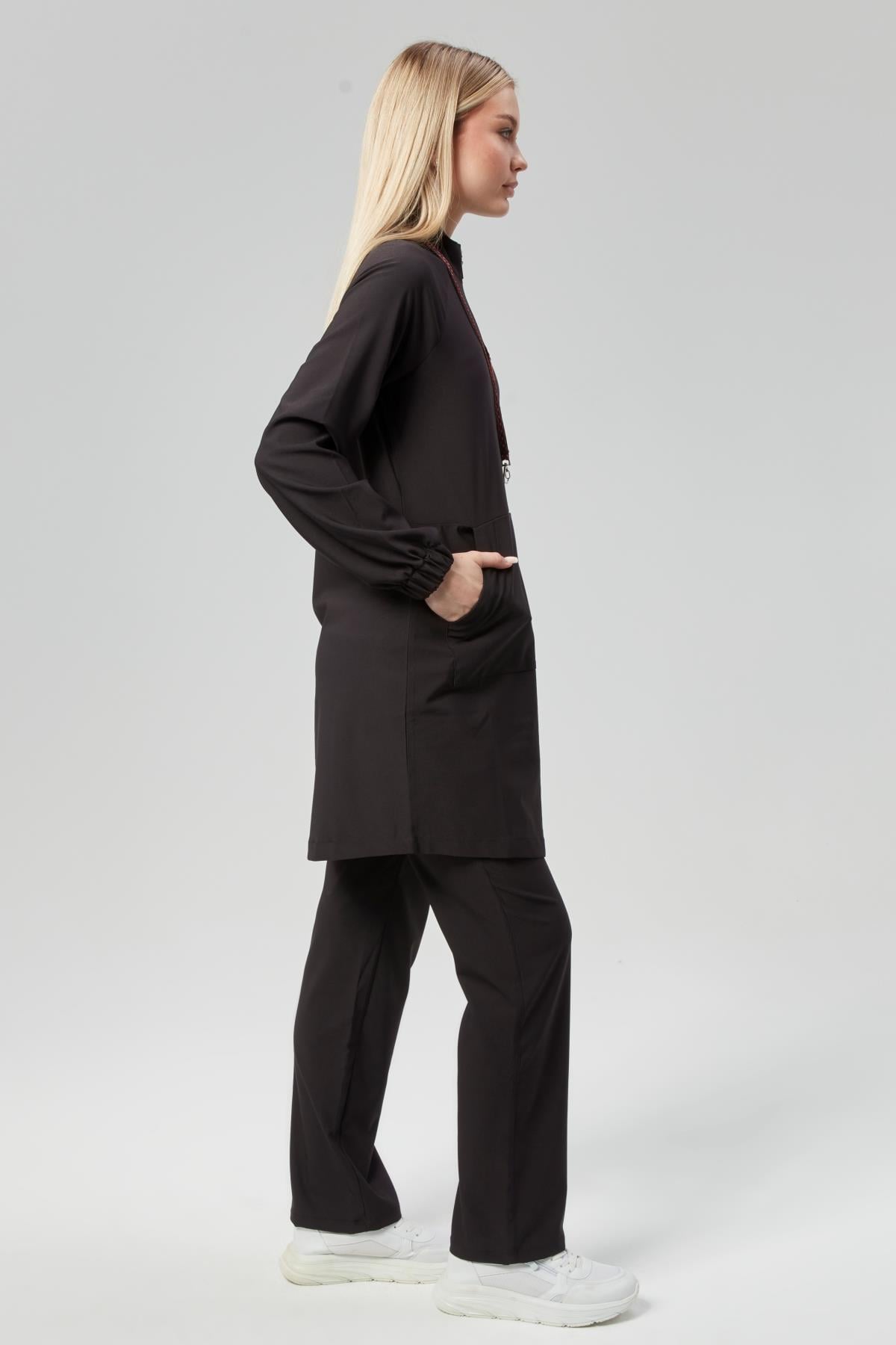 Extreme Cool Modest - Premium Çift Yön Likralı Doktor Hemşire Forma Takımı (KADIN), Kömür (1ACATI13944)