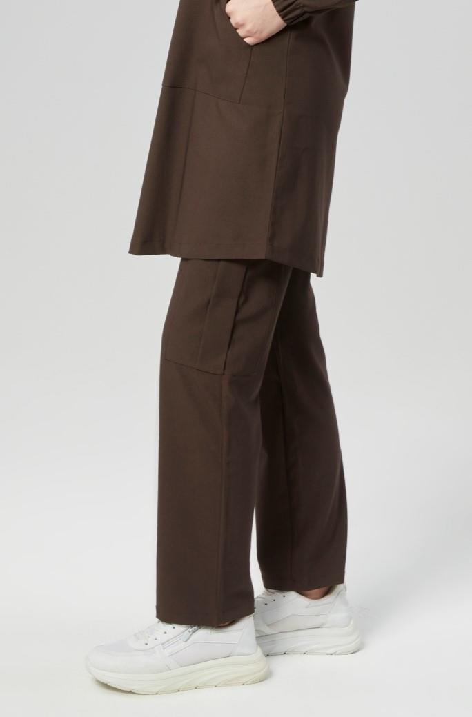 Extreme Cool Modest - Premium Çift Yön Likralı Doktor Hemşire Scrubs Tek Alt Cerrahi Forma (KADIN), Acı Kahve (CATI33943)