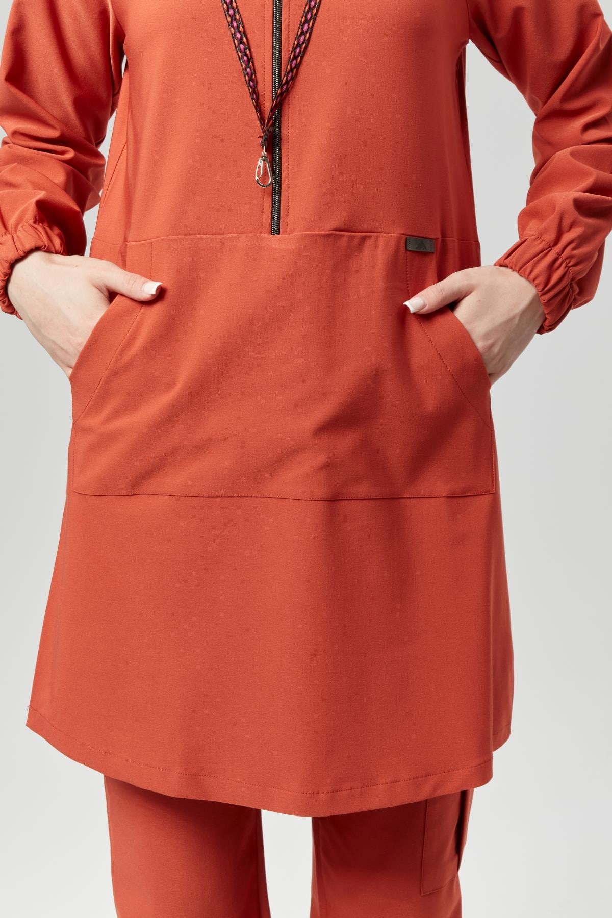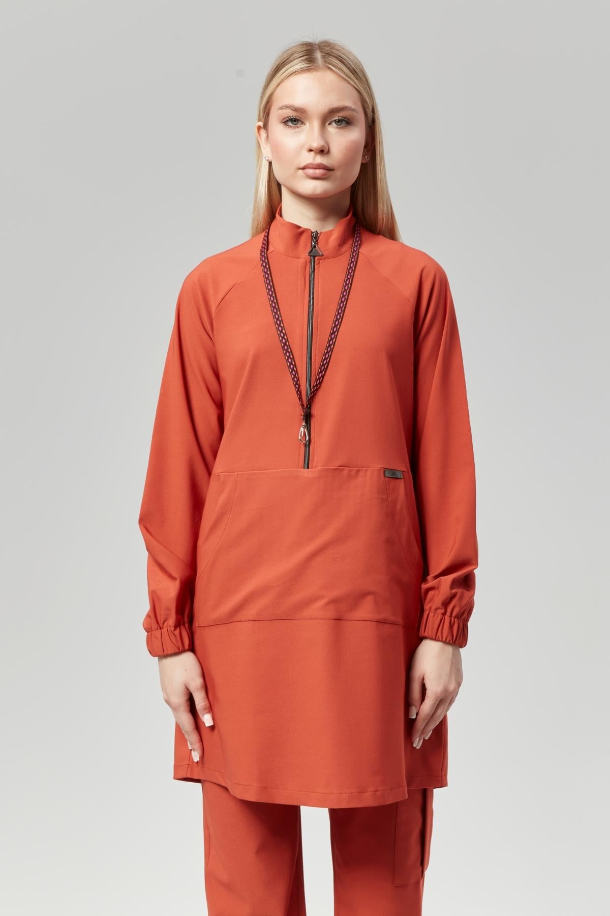 Extreme Cool Modest - Premium Çift Yön Likralı Doktor Hemşire Tek Üst Forma (KADIN), Mandalin (1ACATI23940)