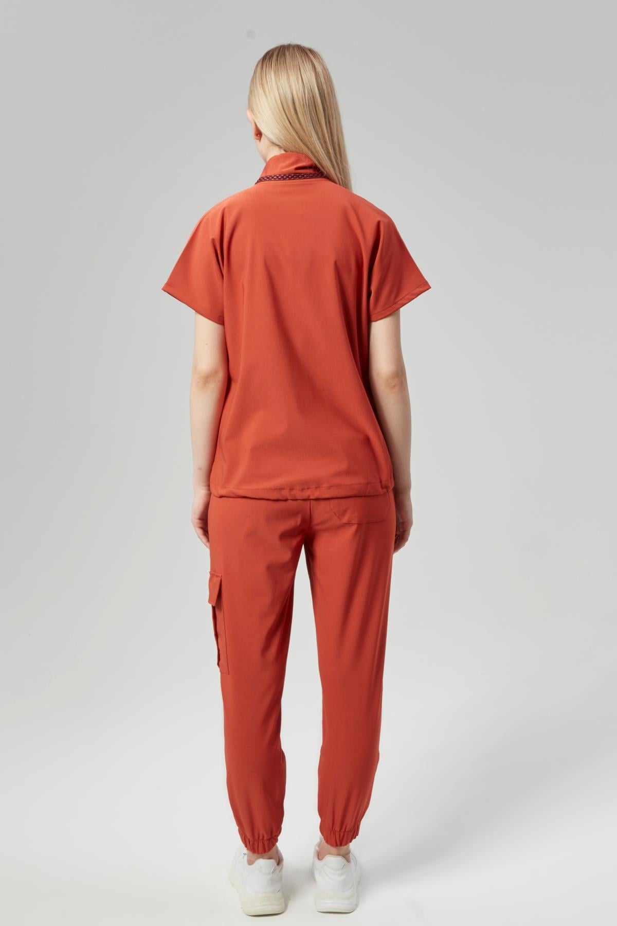 Extreme Cool Woman - Premium Çift Yön Likralı Doktor Hemşire Forma Takımı Scrubs Üniforma Cerrahi Takım (KADIN), Mandalin (CATI11940)
