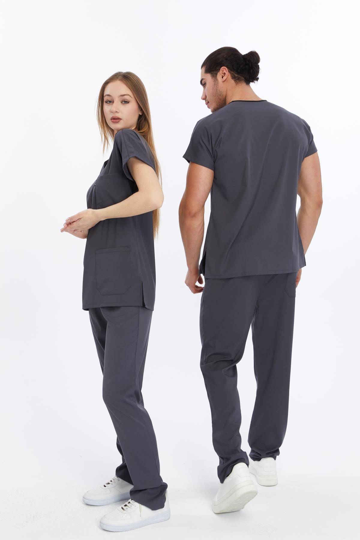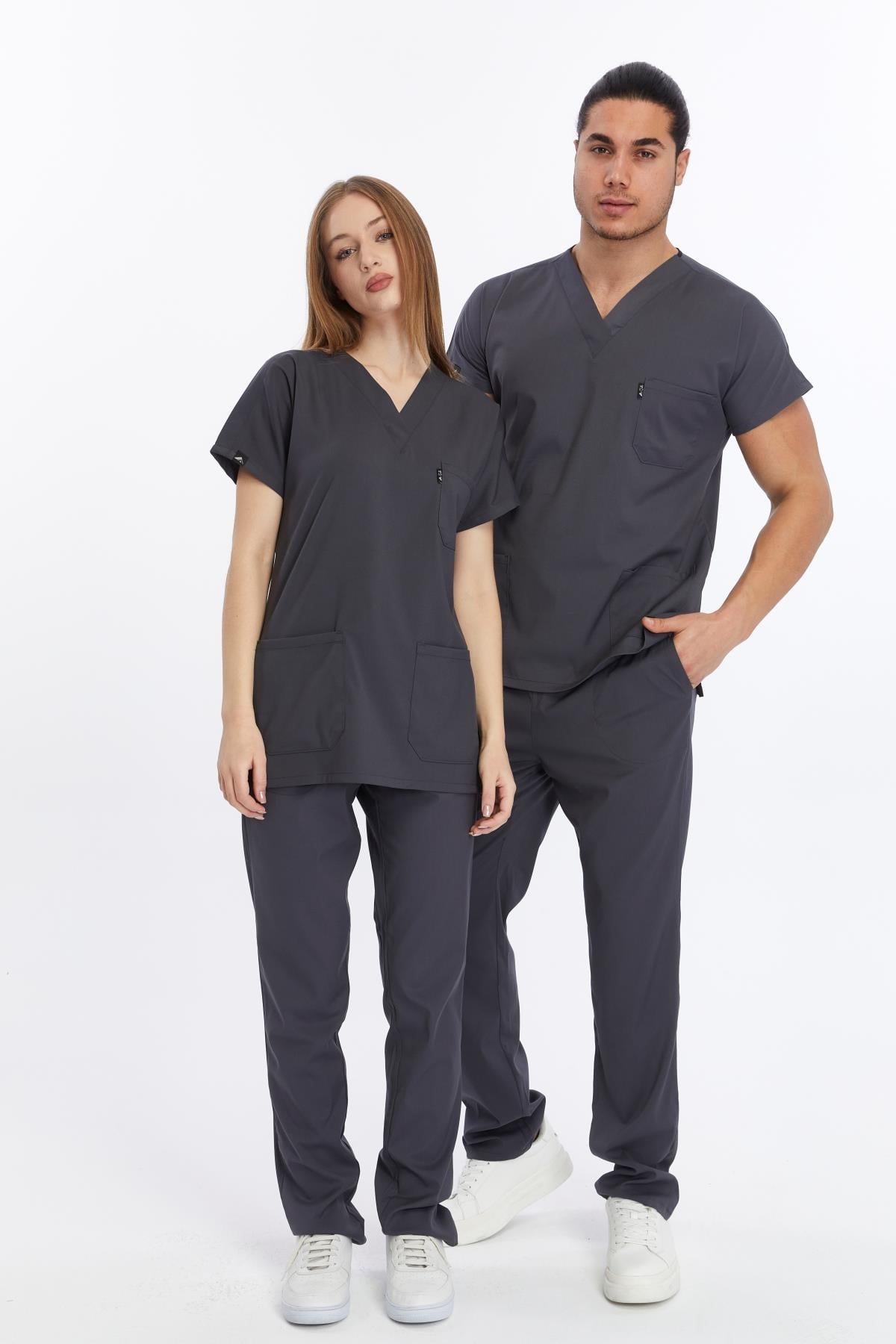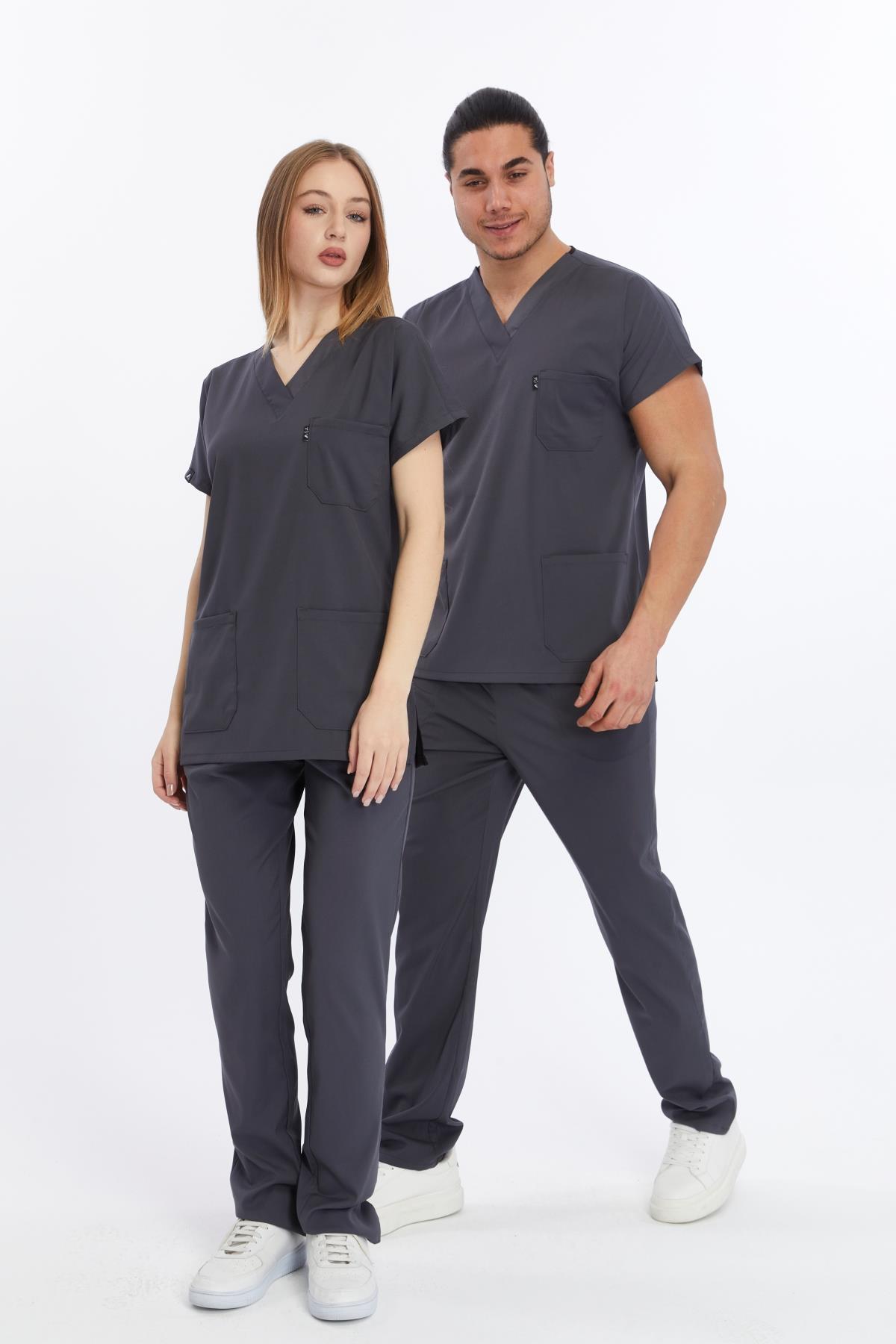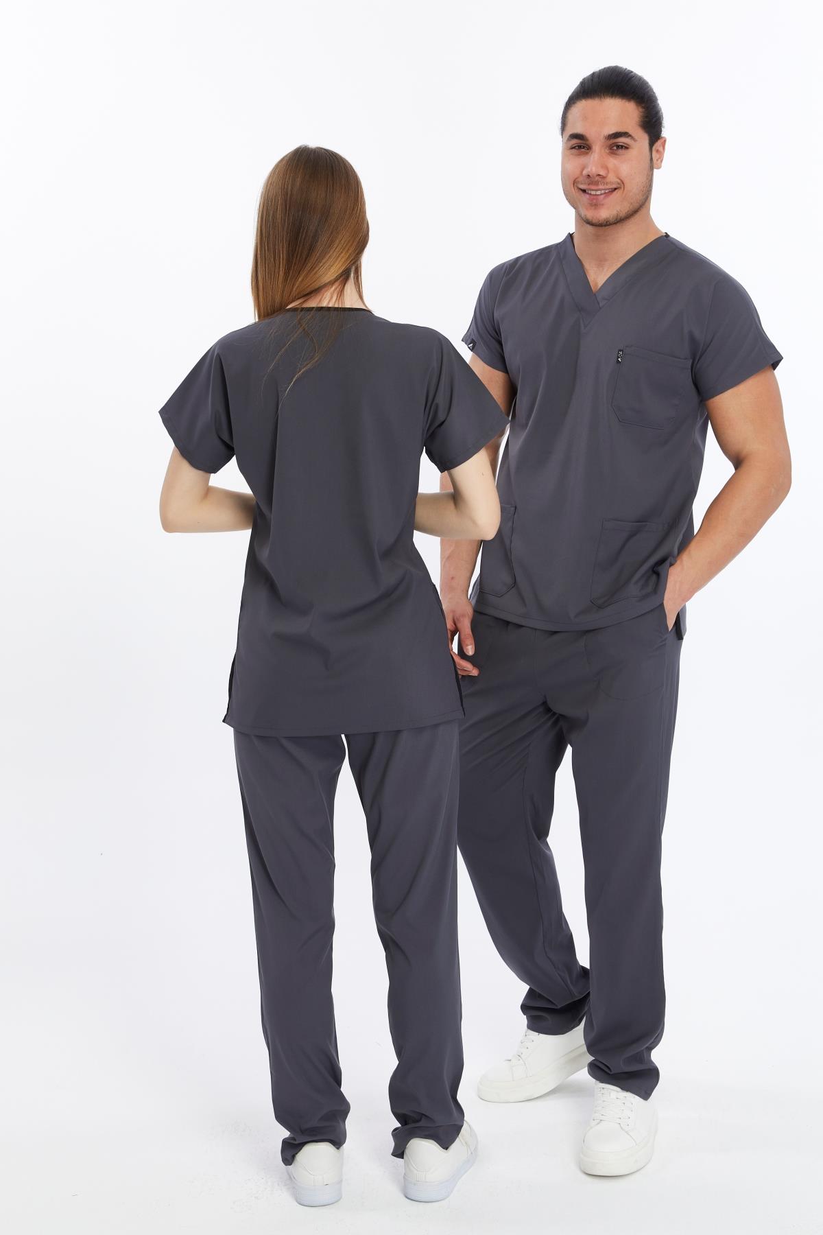 Happiness Basic - Likralı Doktor Hemşire Forma Takımı Scrubs Üniforma Cerrahi Takım (UNISEX), Antrasit (CATI15926)