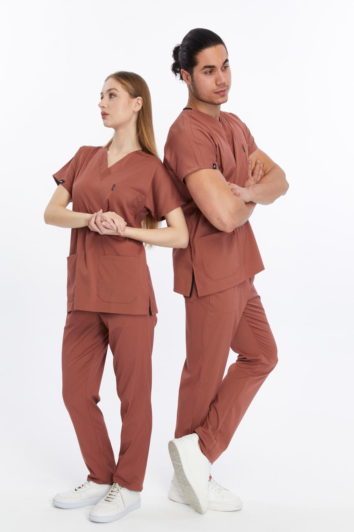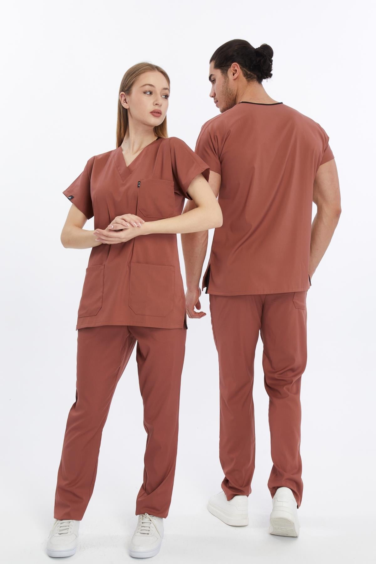 Happiness Basic - Likralı Doktor Hemşire Forma Takımı Scrubs Üniforma Cerrahi Takım (UNISEX), Bisküvi (CATI15938)