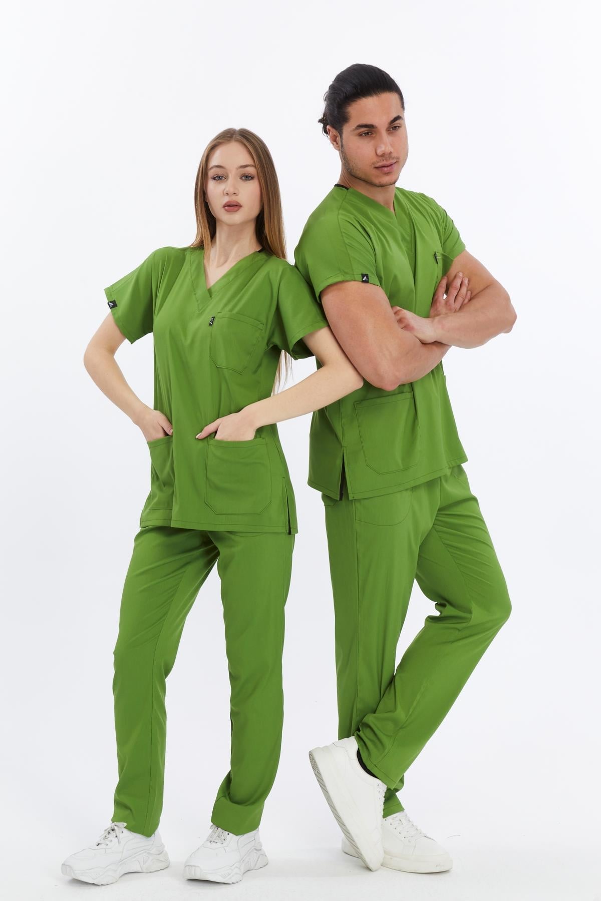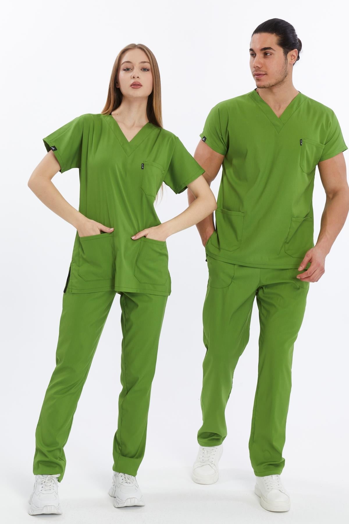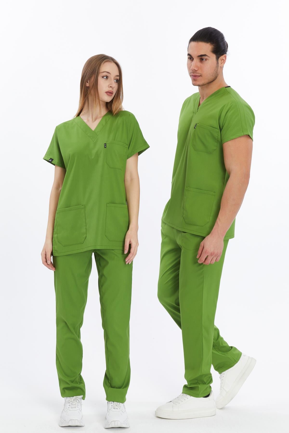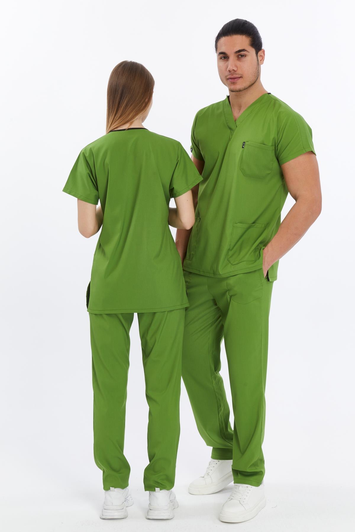 Happiness Basic - Likralı Doktor Hemşire Forma Takımı Scrubs Üniforma Cerrahi Takım (UNISEX), Fıstık Yeşili (CATI15930)