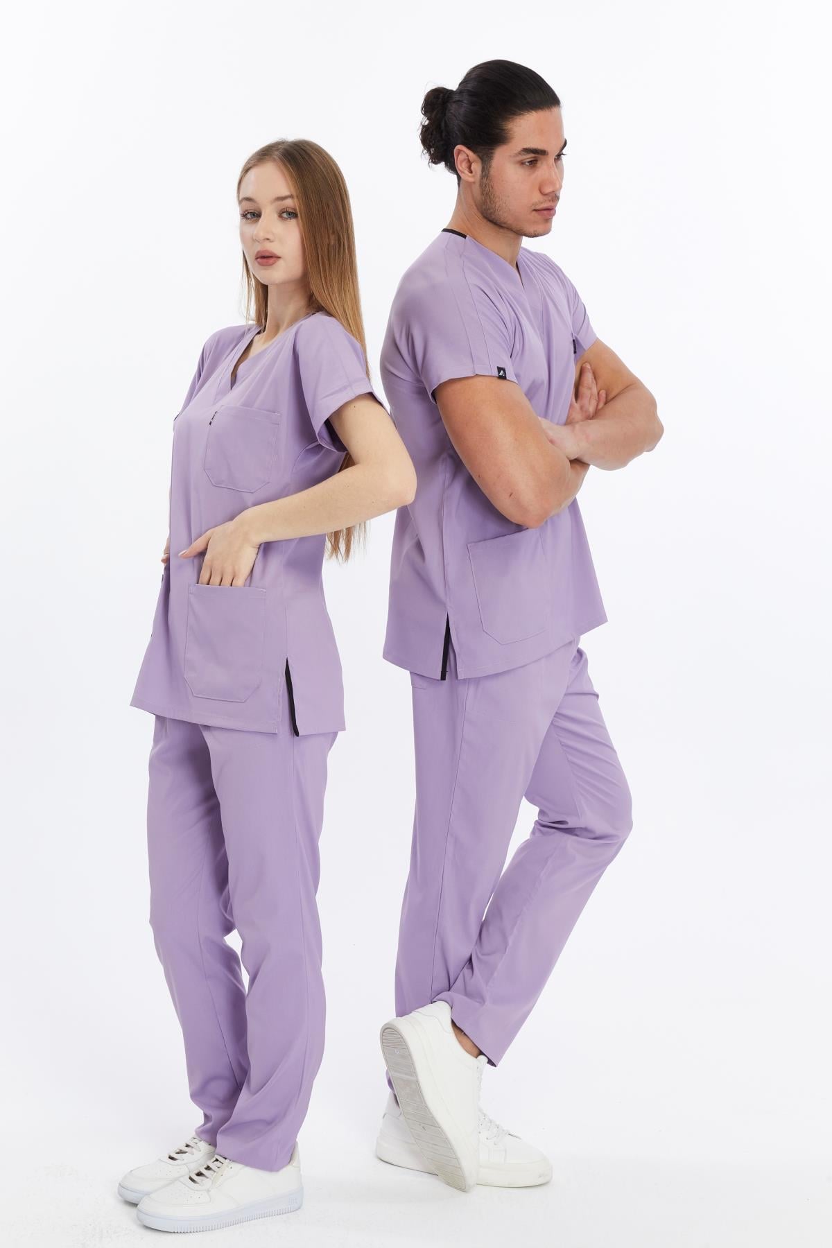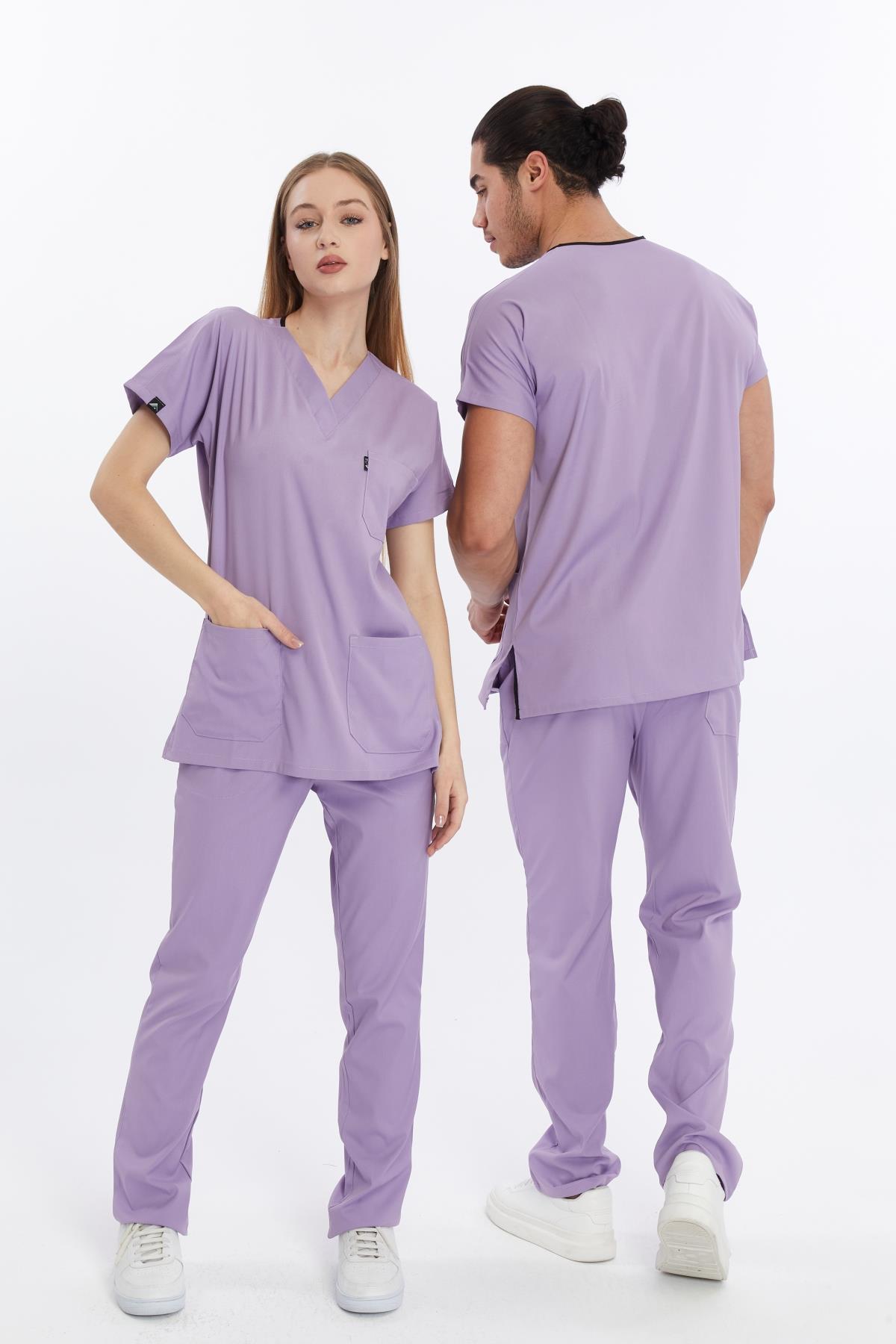 Happiness Basic - Likralı Doktor Hemşire Forma Takımı Scrubs Üniforma Cerrahi Takım (UNISEX), Lila (CATI15931)