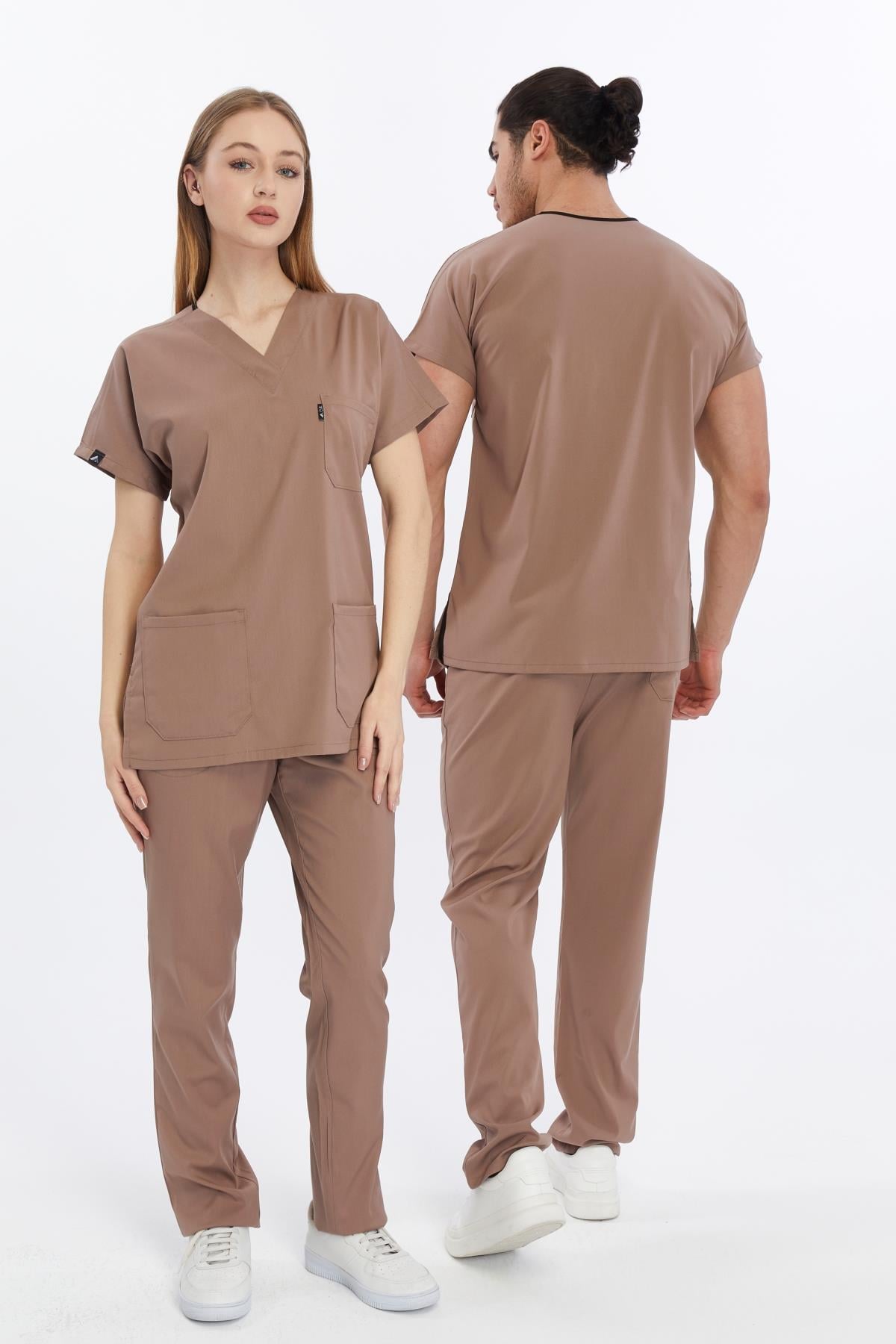 Happiness Basic - Likralı Doktor Hemşire Forma Takımı Scrubs Üniforma Cerrahi Takım (UNISEX), Taş Beji (CATI15936)