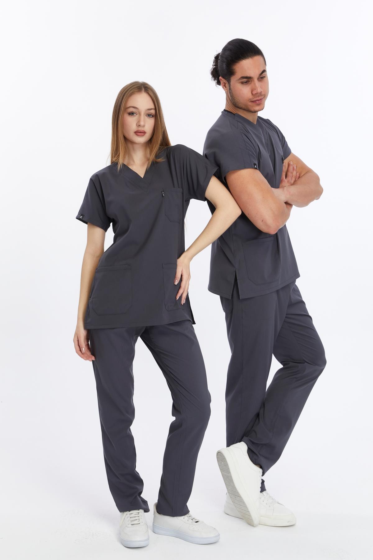 Happiness Basic - Likralı Doktor Hemşire Forma Takımı (UNISEX), Antrasit (1ACATI15926)