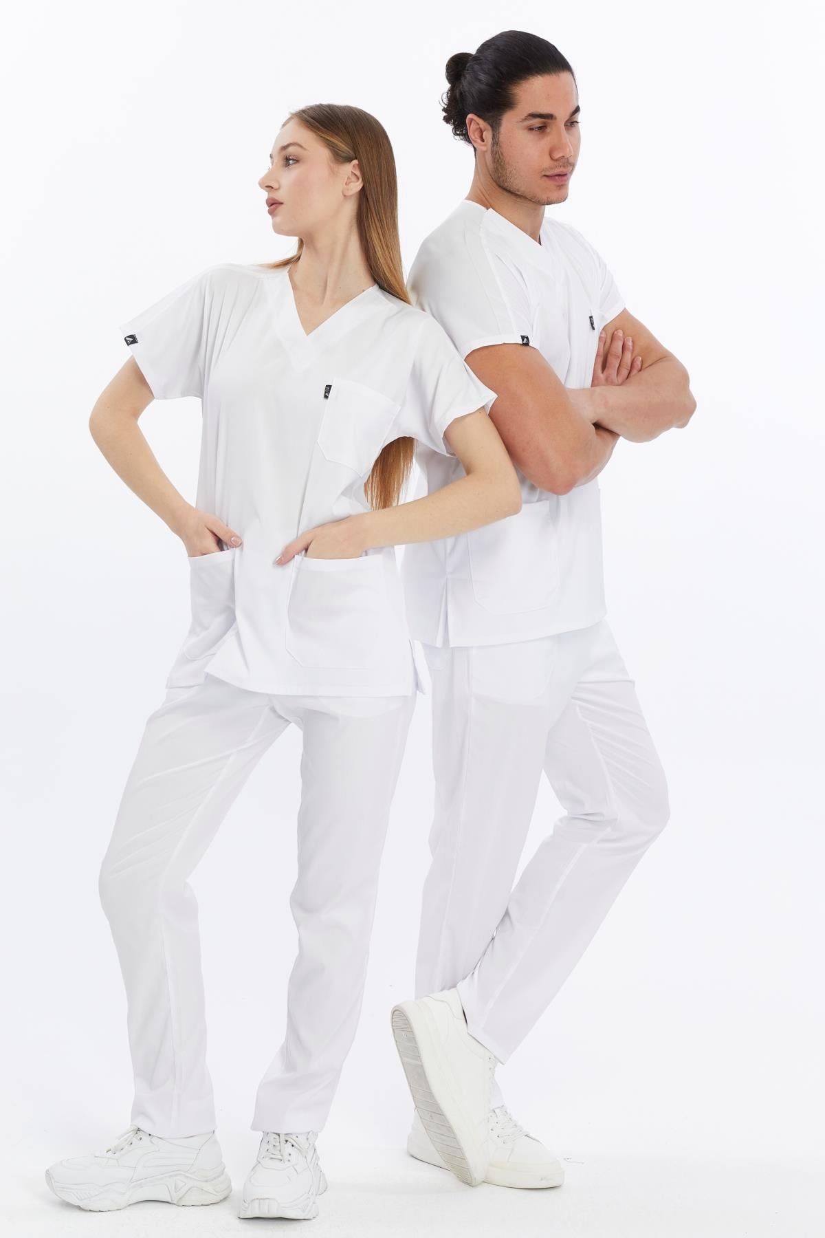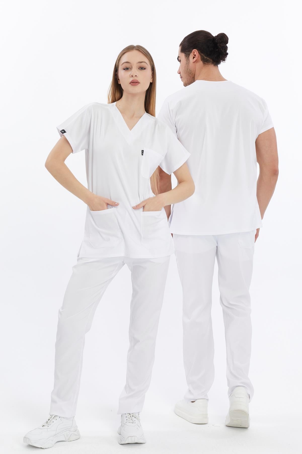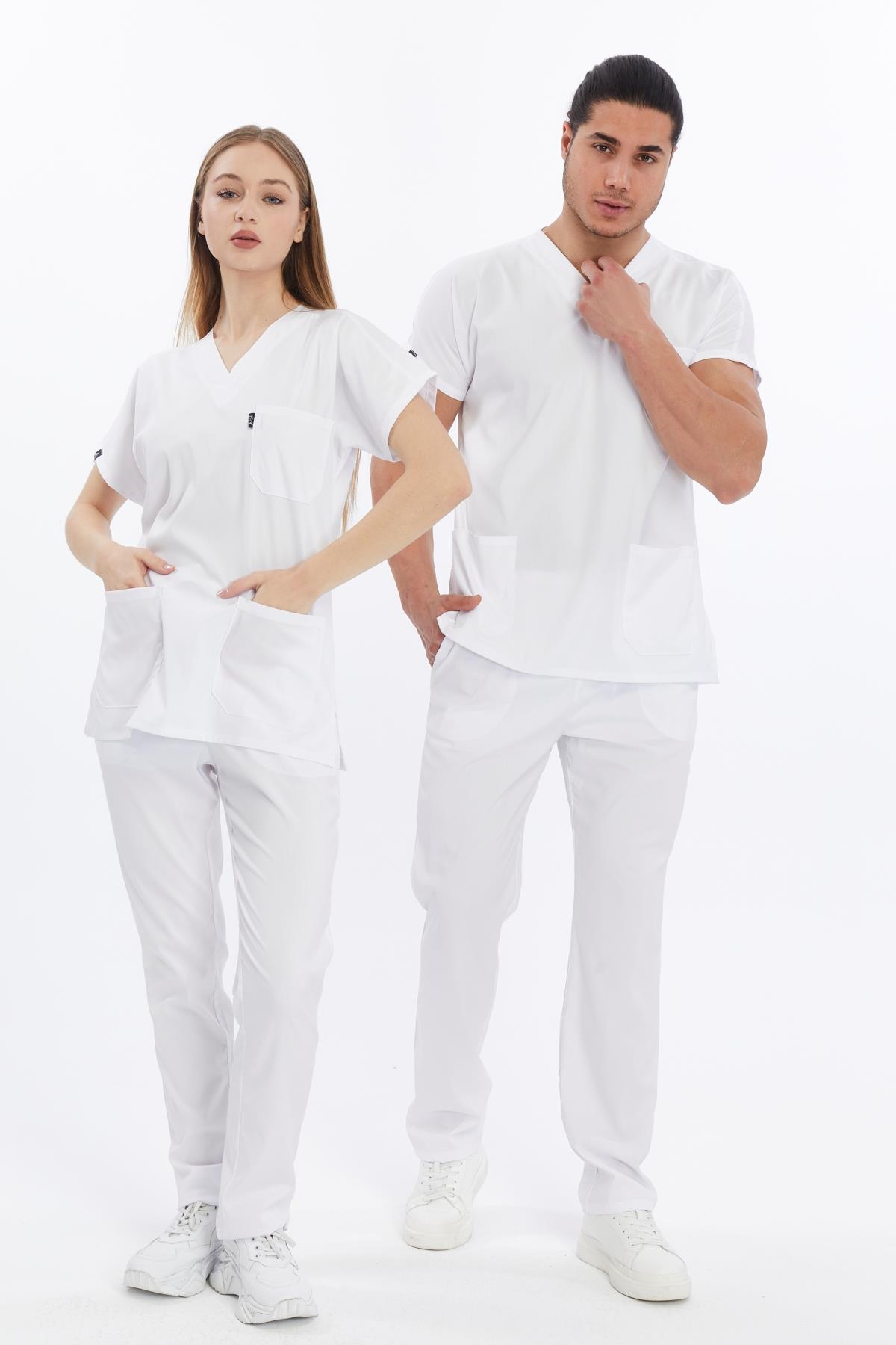 Happiness Basic - Likralı Doktor Hemşire Forma Takımı (UNISEX), Beyaz (1ACATI15901)