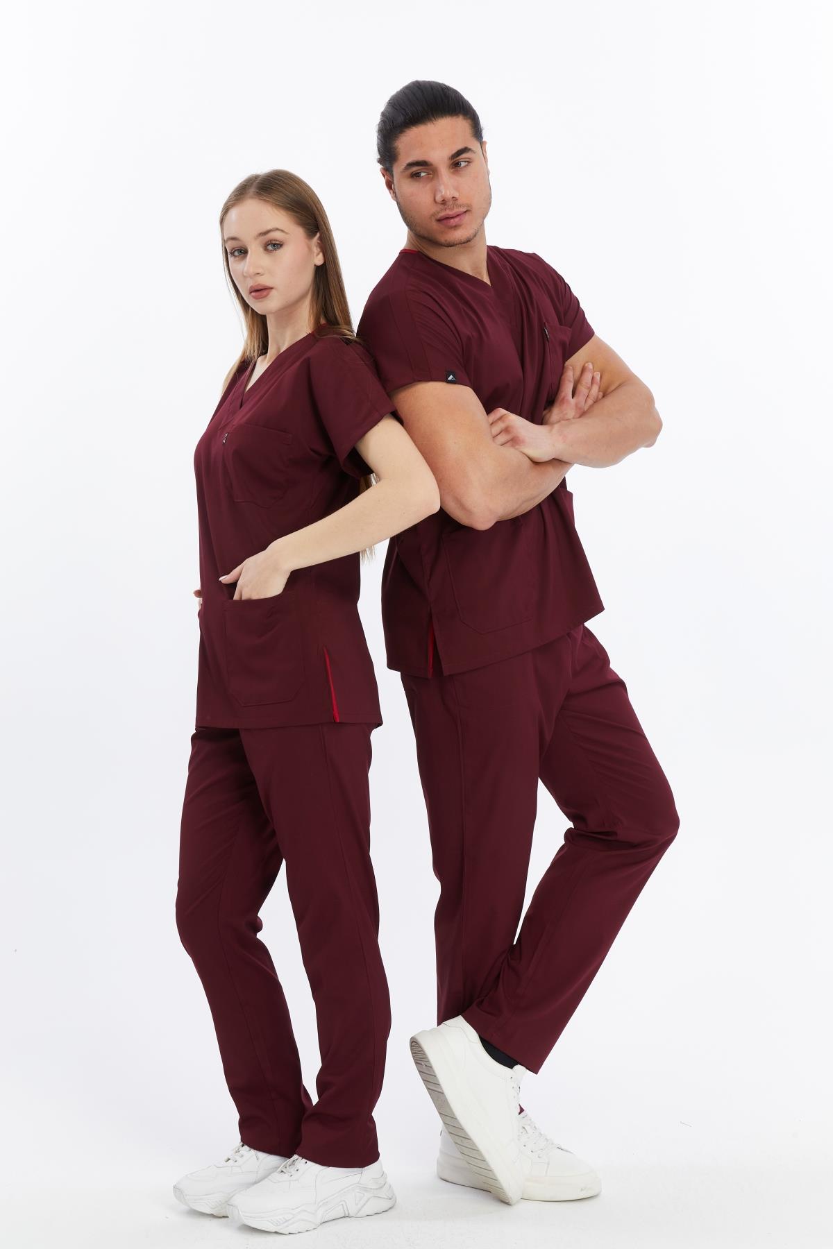 Happiness Basic - Likralı Doktor Hemşire Forma Takımı (UNISEX), Bordo (1ACATI15908)