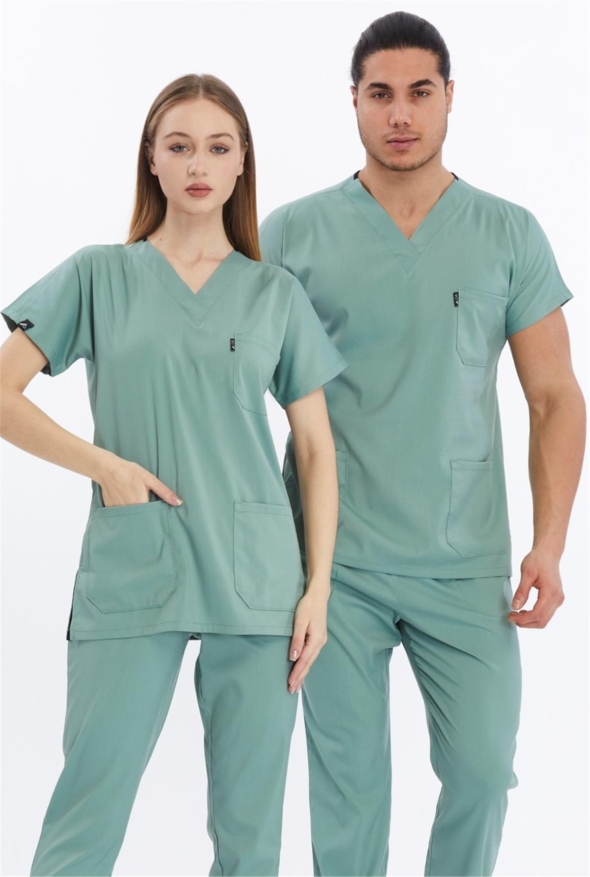 Happiness Basic - Likralı Doktor Hemşire Scrubs Tek Üst Cerrahi Forma (UNISEX), Çağla Yeşili (CATI25923)