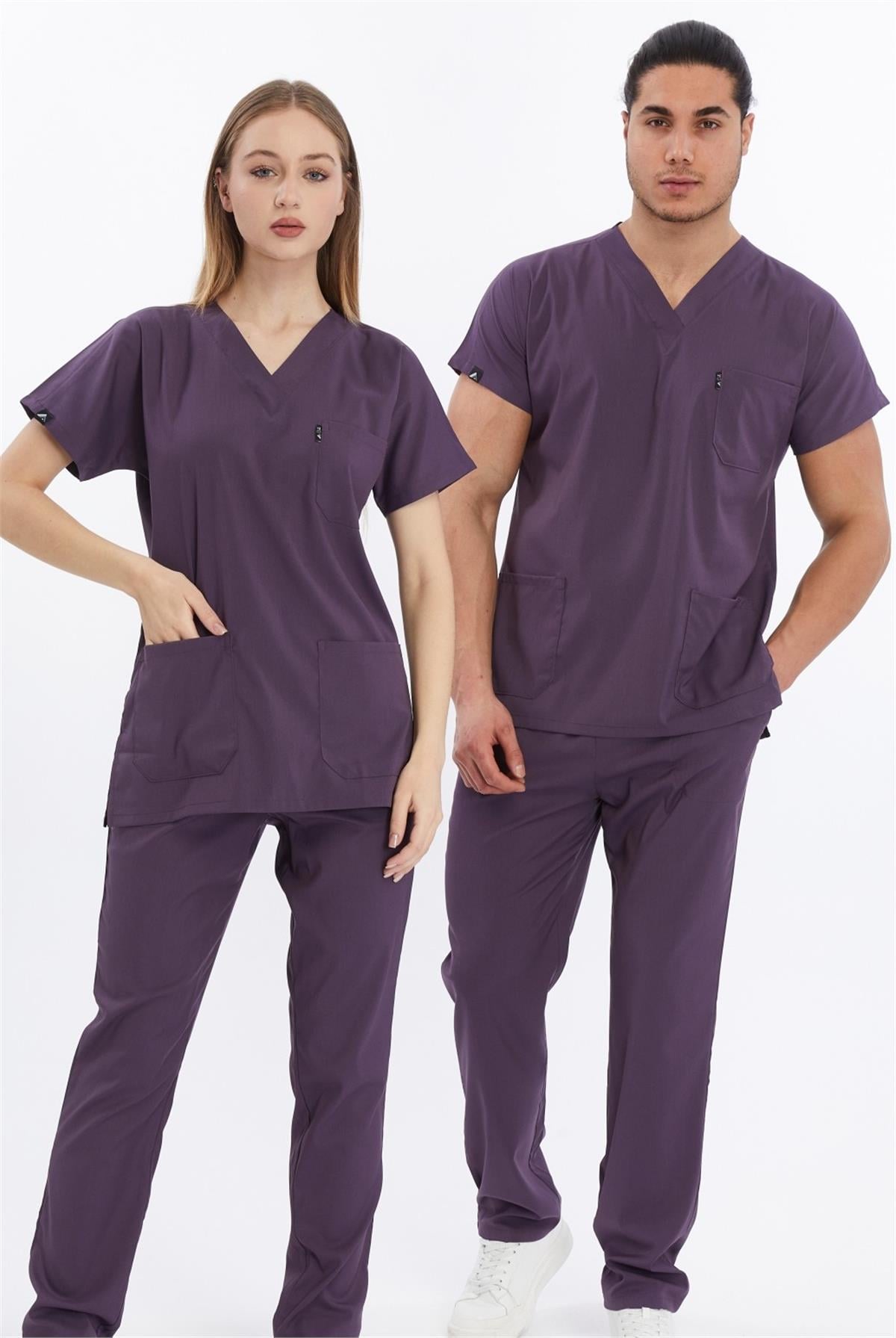 Happiness Basic - Likralı Doktor Hemşire Scrubs Tek Üst Cerrahi Forma (UNISEX), Gül Kurusu (CATI25914)