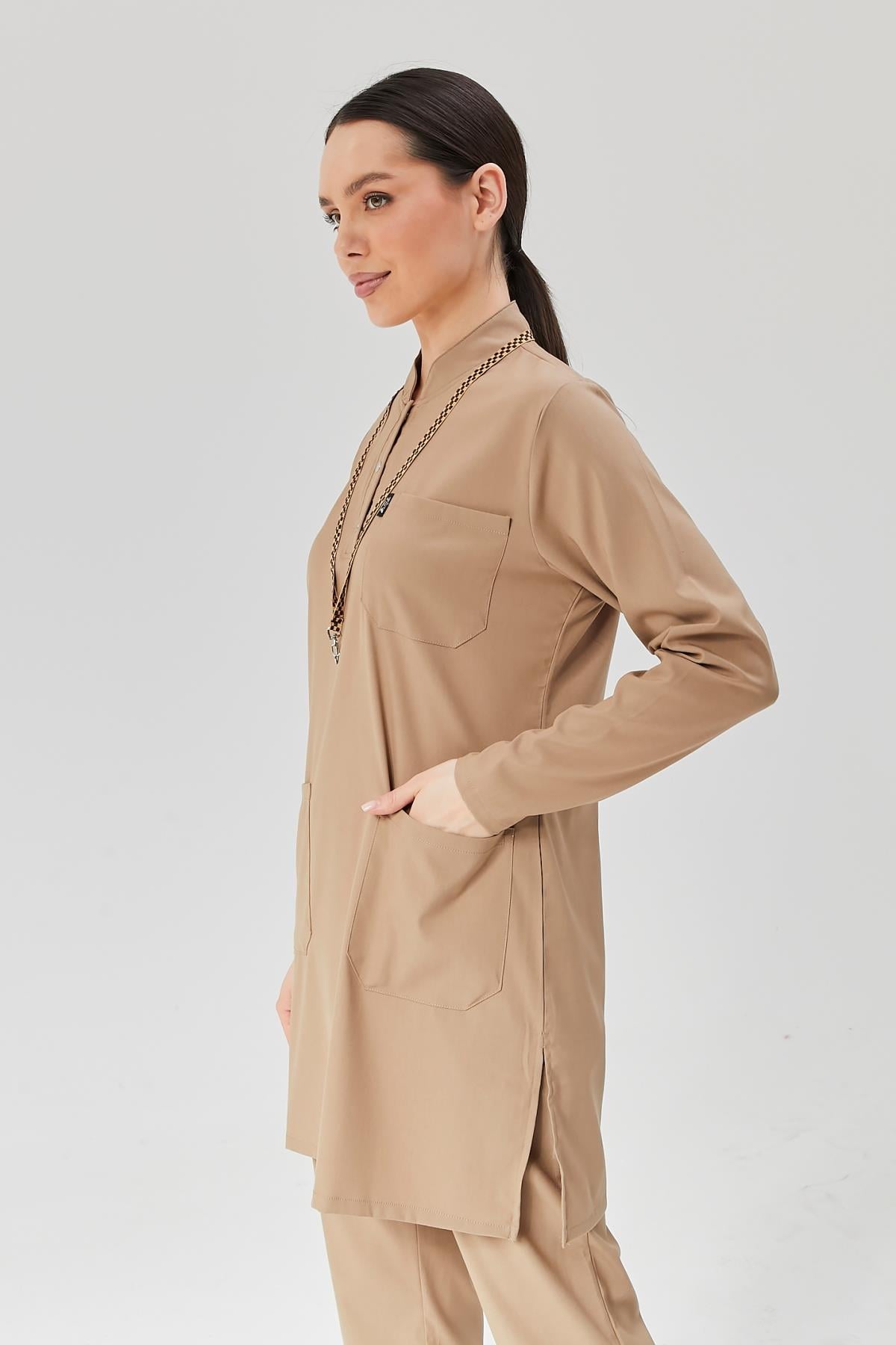 Happiness Modest - Likralı Doktor Hemşire Tesettür Forma Takımı, Bej (1ACATI12932)