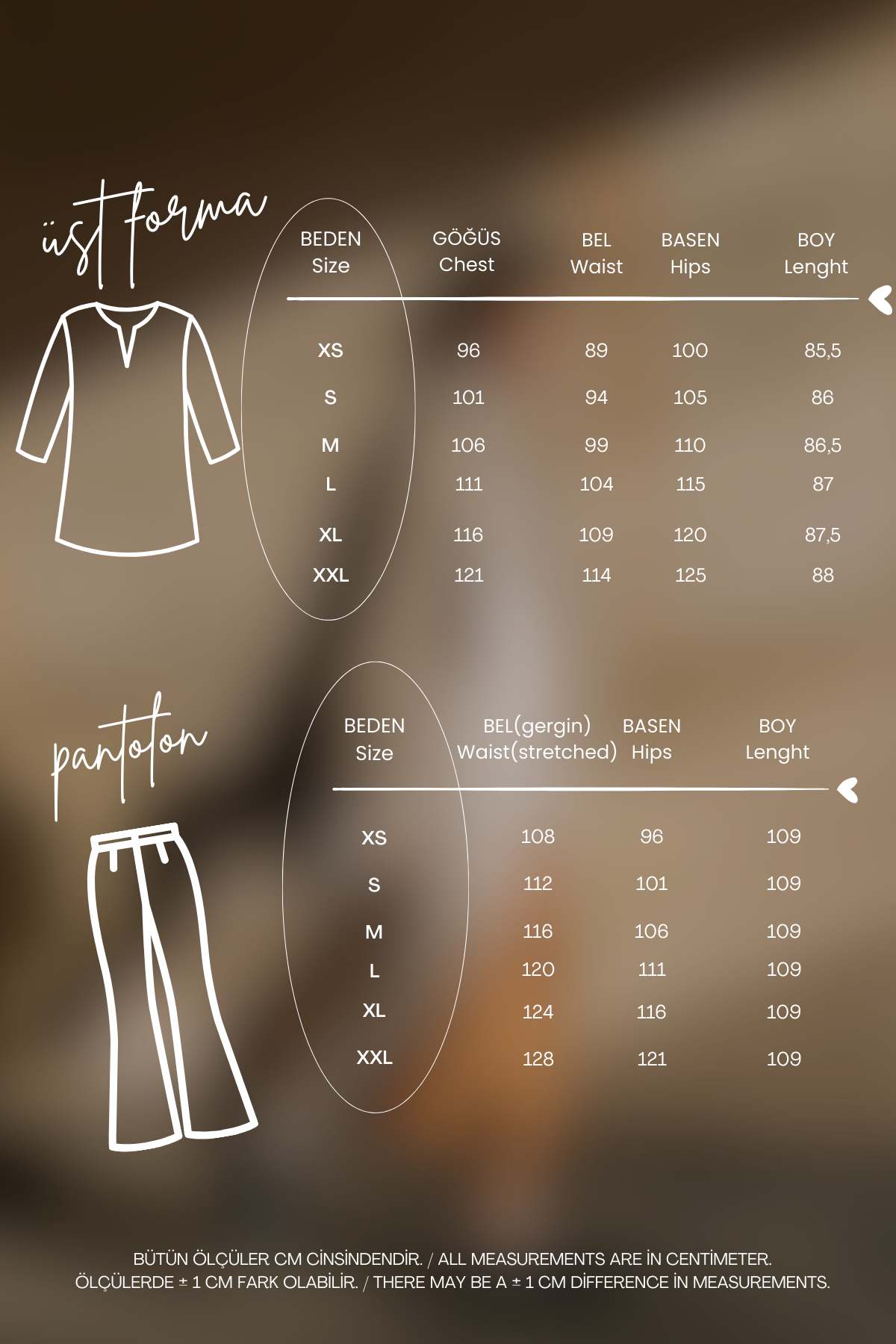 • Paket içeriği üst ve pantolon olarak 2 parçadan oluşur.
