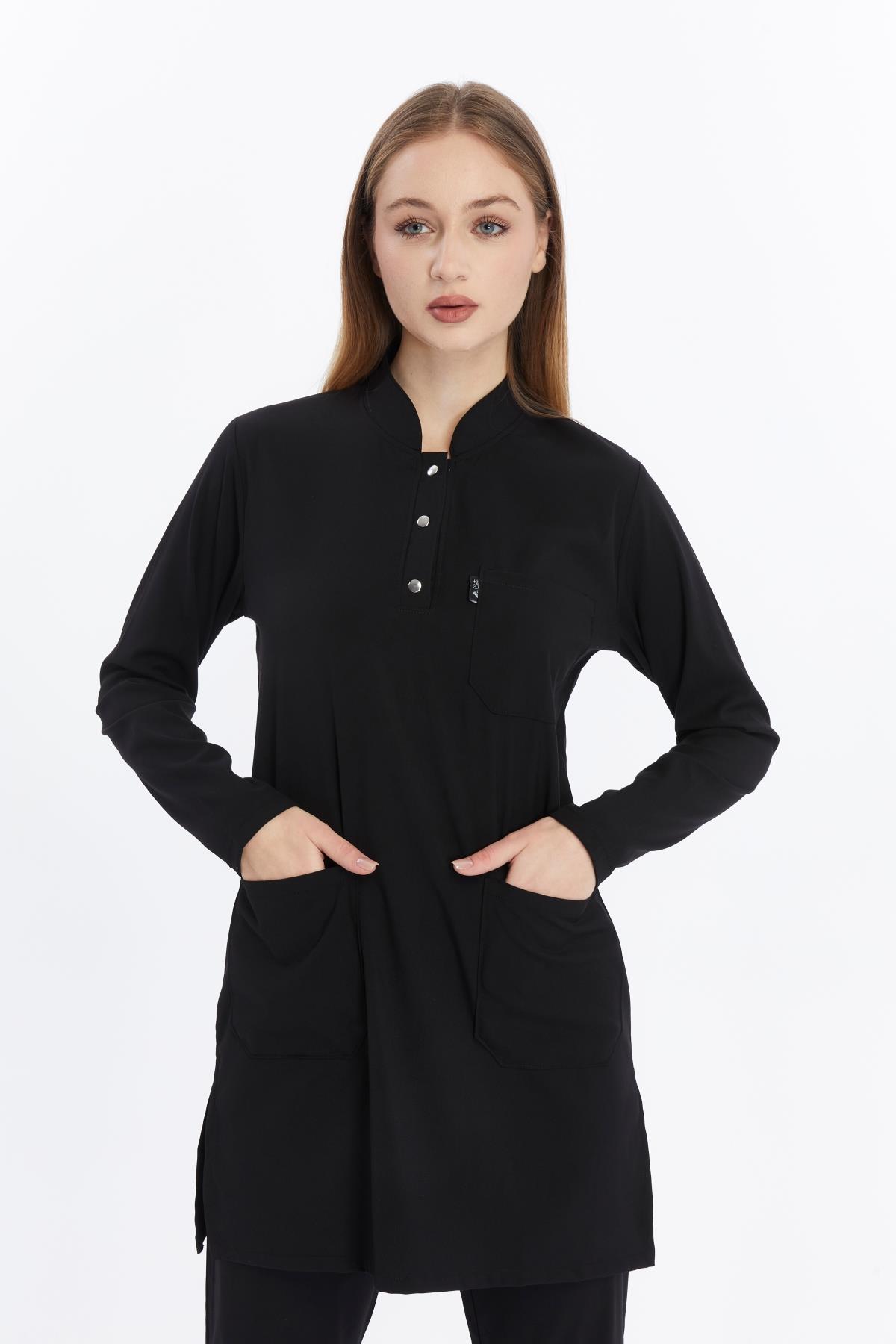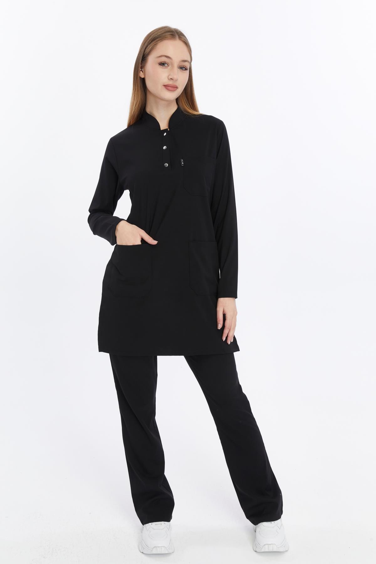 Happiness Modest - Likralı Doktor Hemşire Tesettür Forma Takımı, Siyah (1ACATI12902)