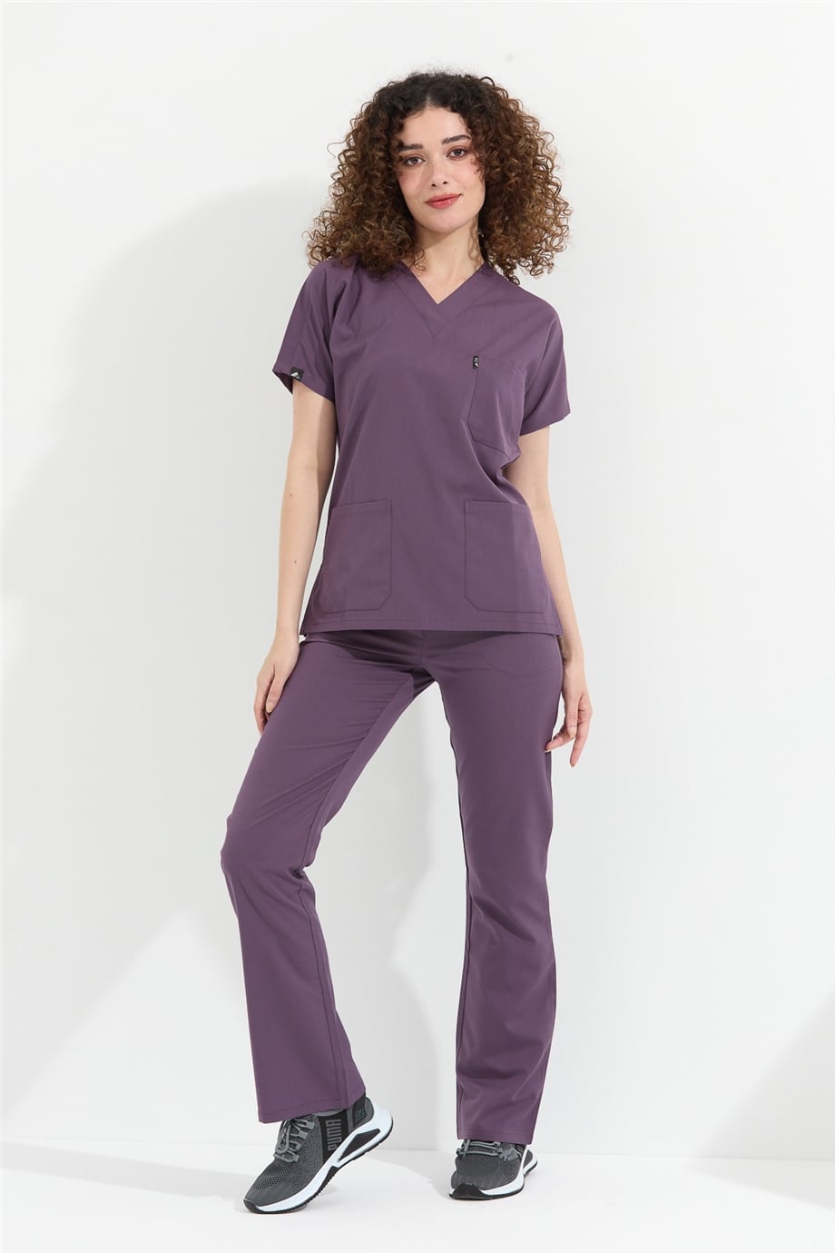 Happiness Spaniard - Likralı Doktor Hemşire Forma Takımı Scrubs Üniforma Cerrahi Takım (KADIN), Gül Kurusu (CATI10914)