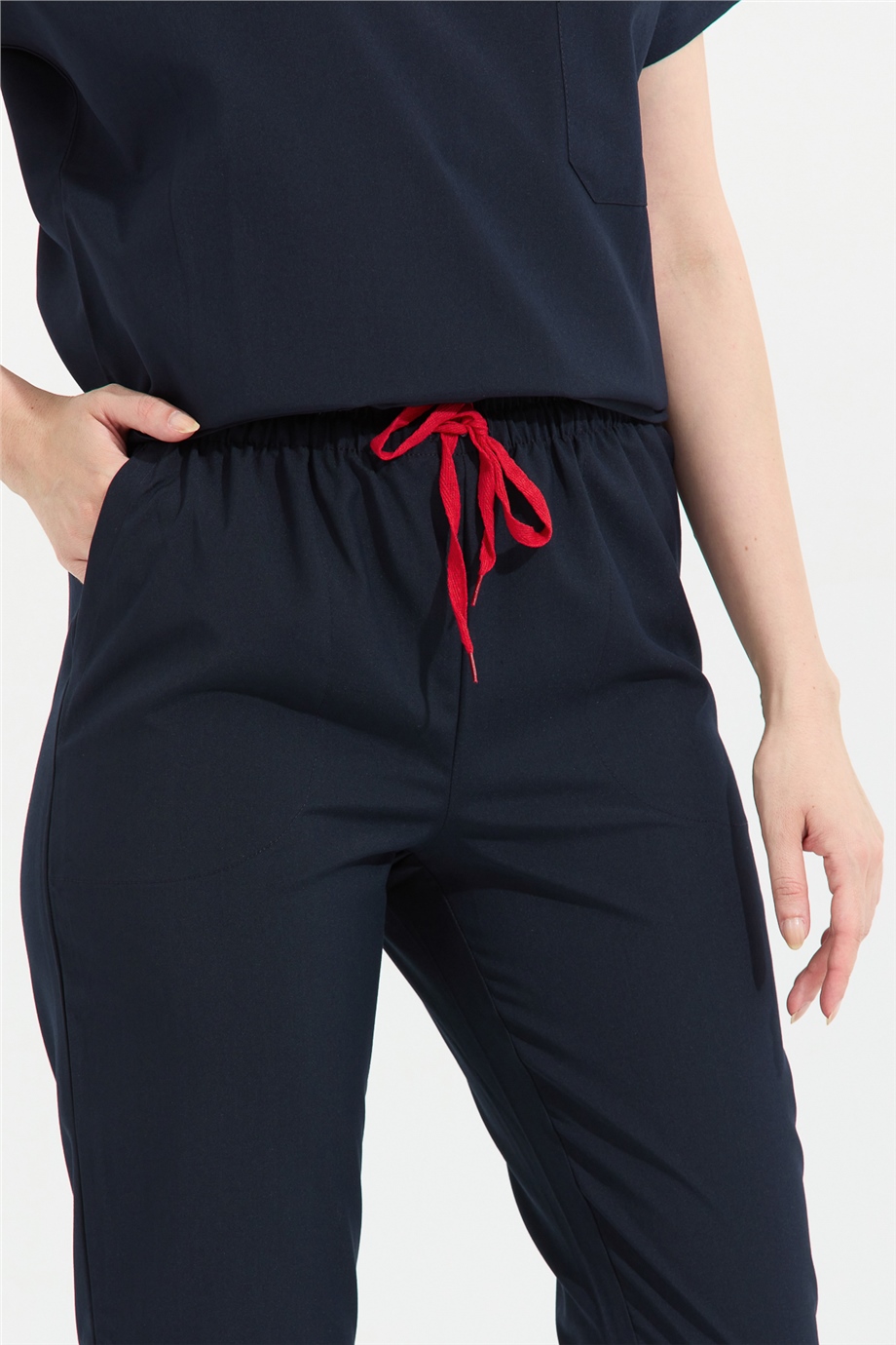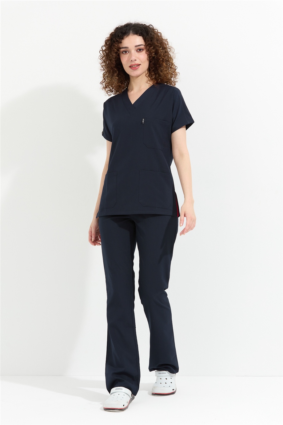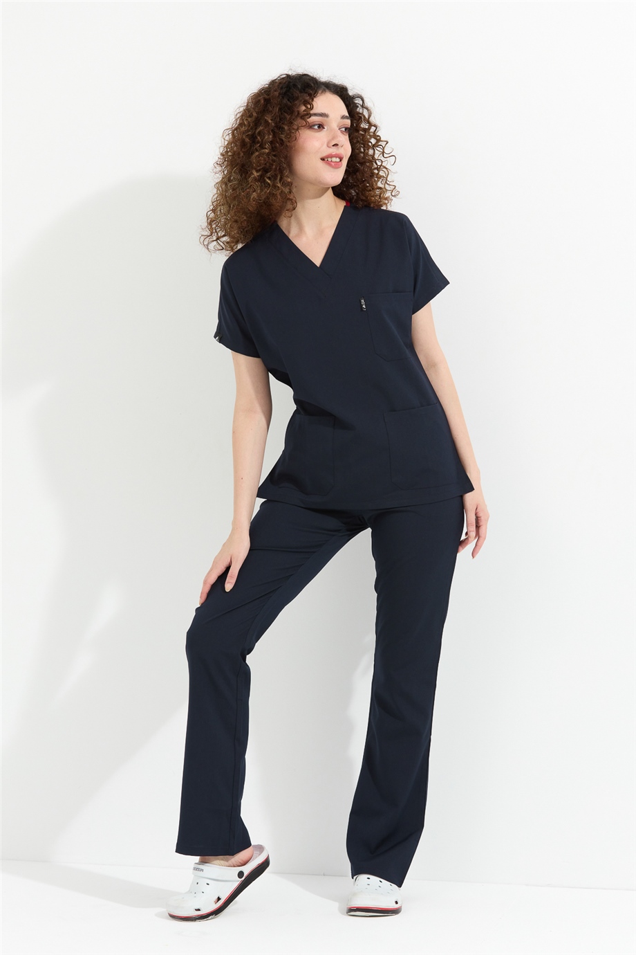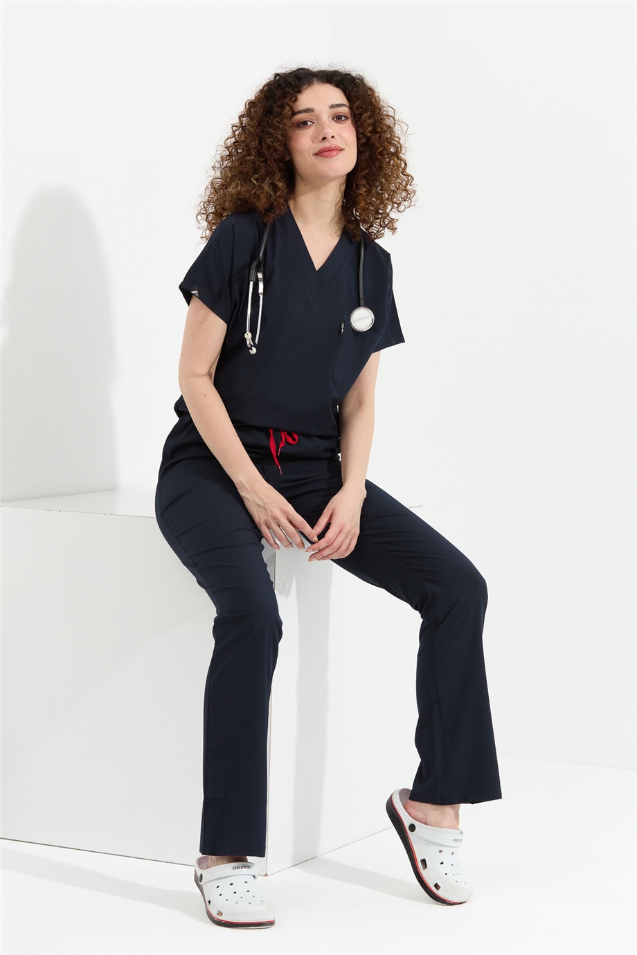 Happiness Spaniard - Likralı Doktor Hemşire Forma Takımı Scrubs Üniforma Cerrahi Takım (KADIN), Lacivert (CATI10903)