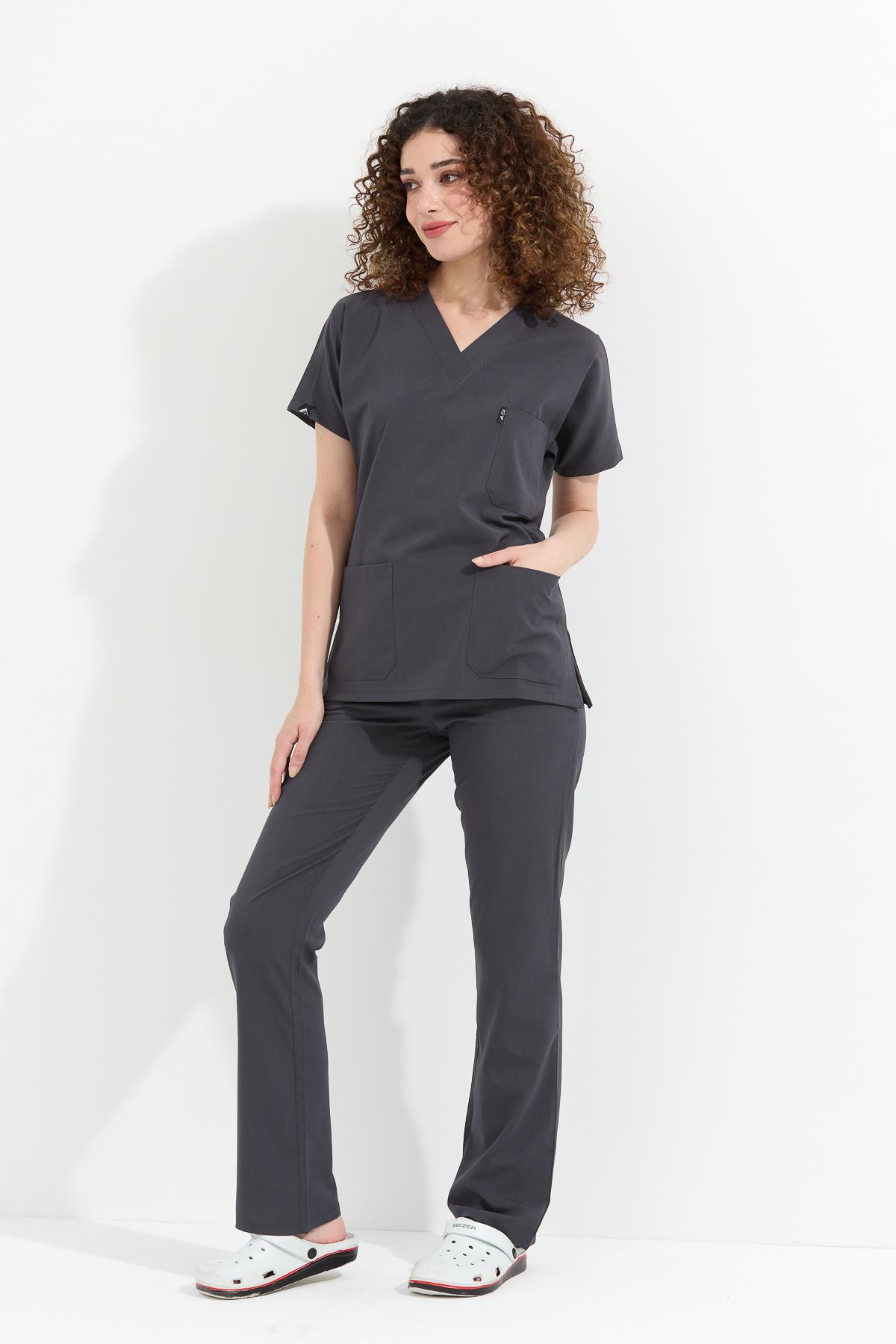 Happiness Spaniard - Likralı Doktor Hemşire Forma Takımı (KADIN), Antrasit (1ACATI10925)