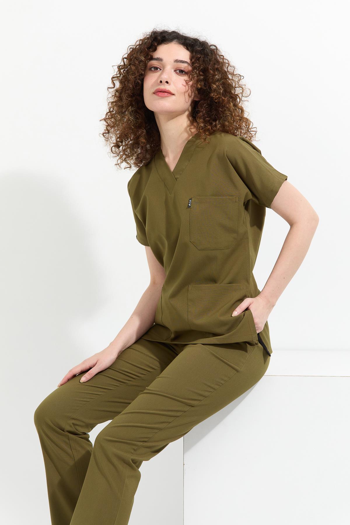 Happiness Spaniard - Likralı Doktor Hemşire Forma Takımı (KADIN), Haki (1ACATI10916)