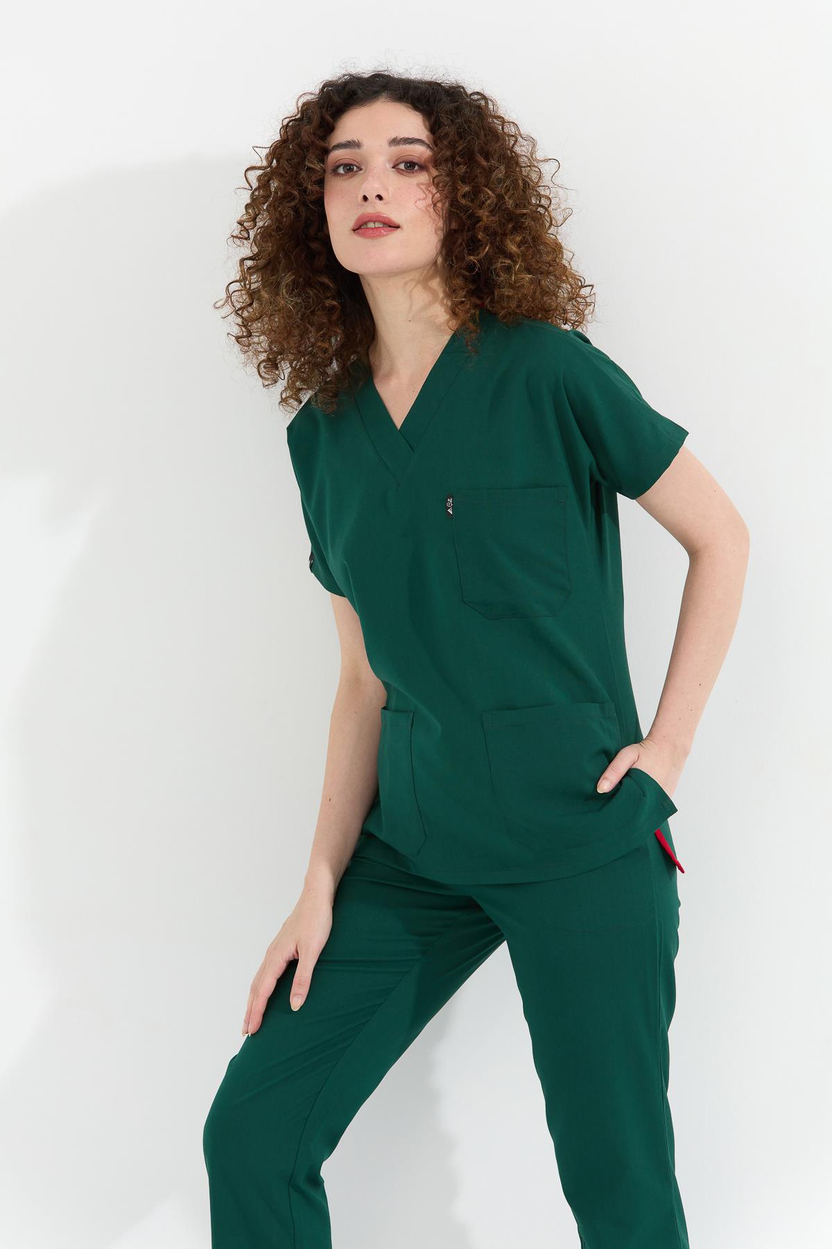 Happiness Spaniard - Likralı Doktor Hemşire Forma Takımı (KADIN), Koyu Yeşil (1ACATI10917)