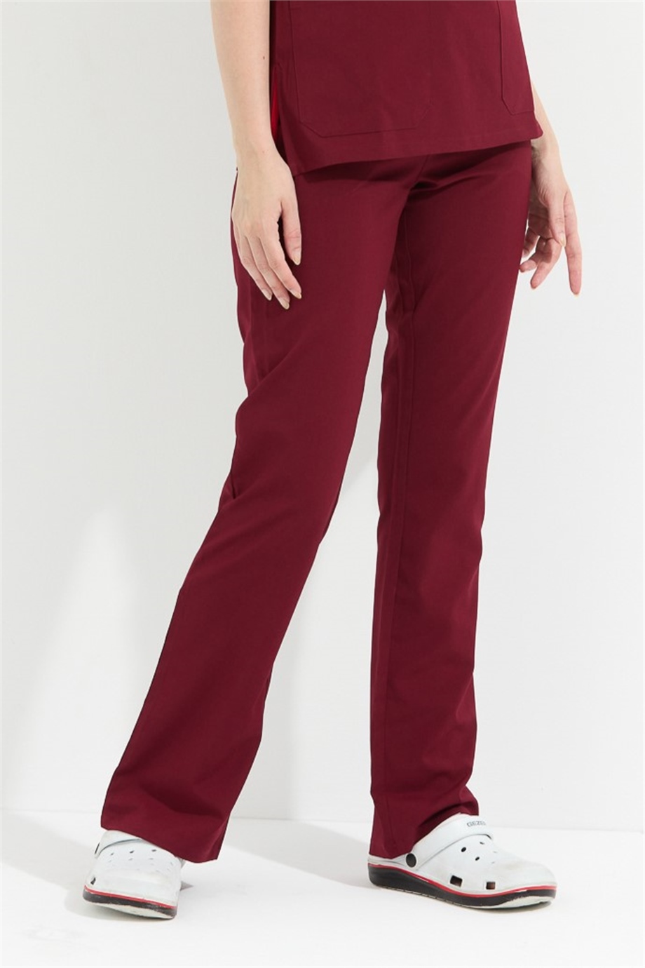 Happiness Spaniard - Likralı Doktor Hemşire Scrubs Tek Alt Cerrahi Forma (KADIN), Bordo (CATI30908)