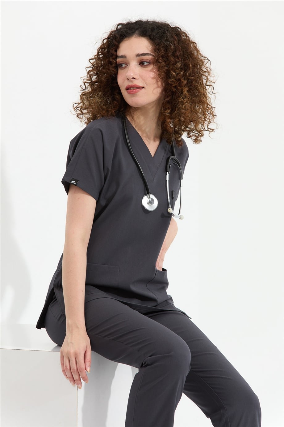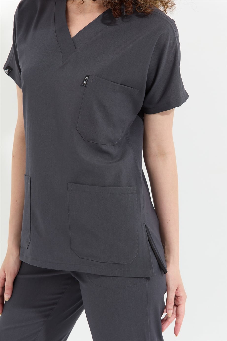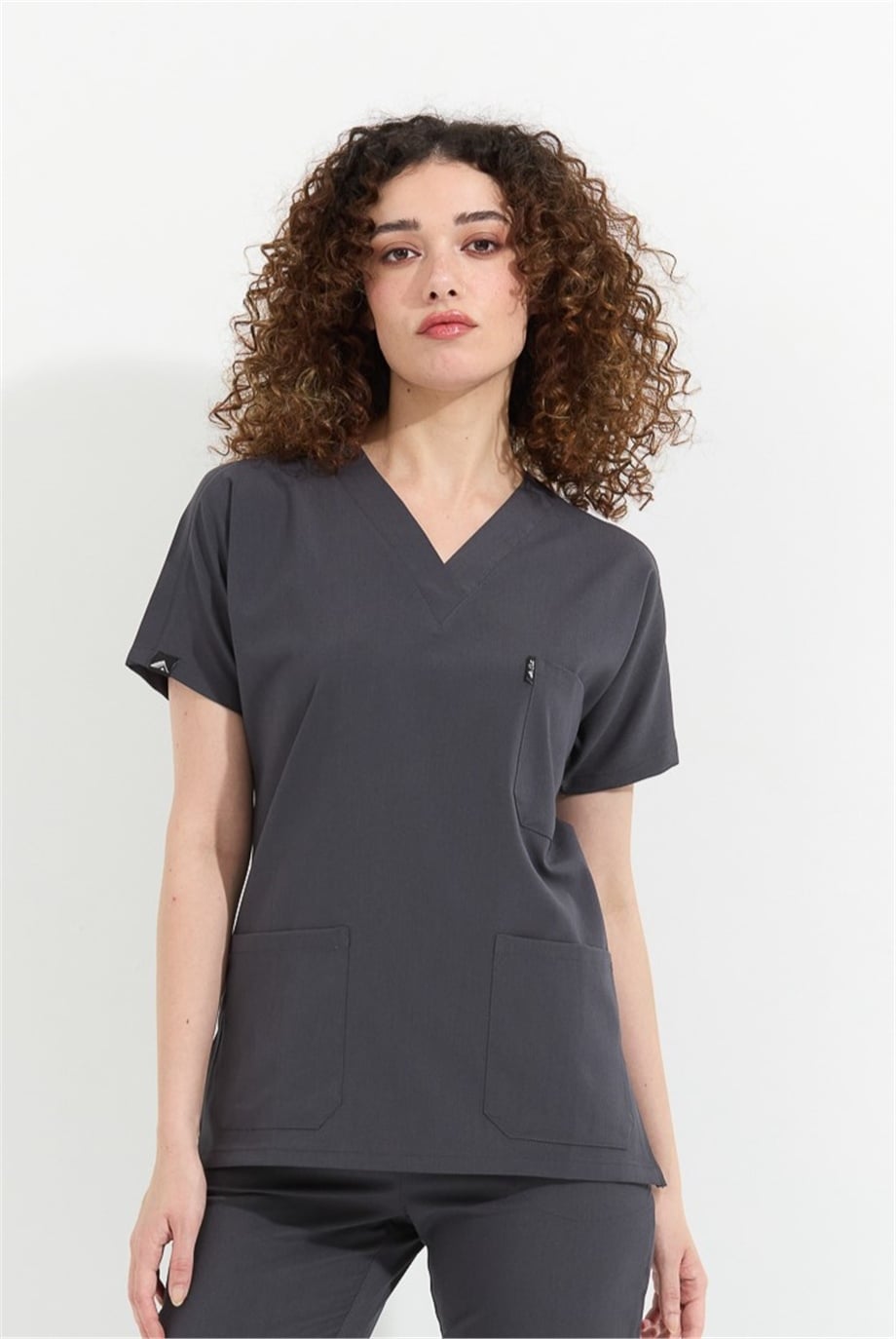 Happiness Spaniard - Likralı Doktor Hemşire Scrubs Tek Üst Cerrahi Forma (KADIN), Antrasit (CATI20925)