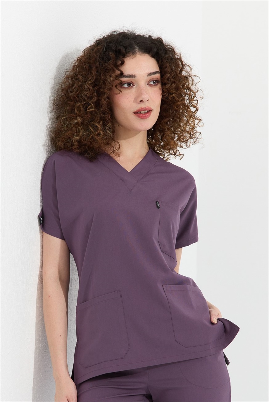 Happiness Spaniard - Likralı Doktor Hemşire Scrubs Tek Üst Cerrahi Forma (KADIN), Gül Kurusu (CATI20914)
