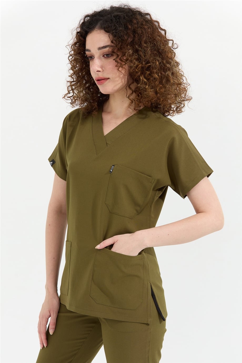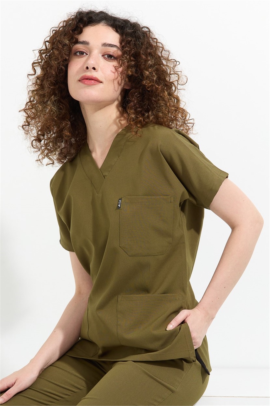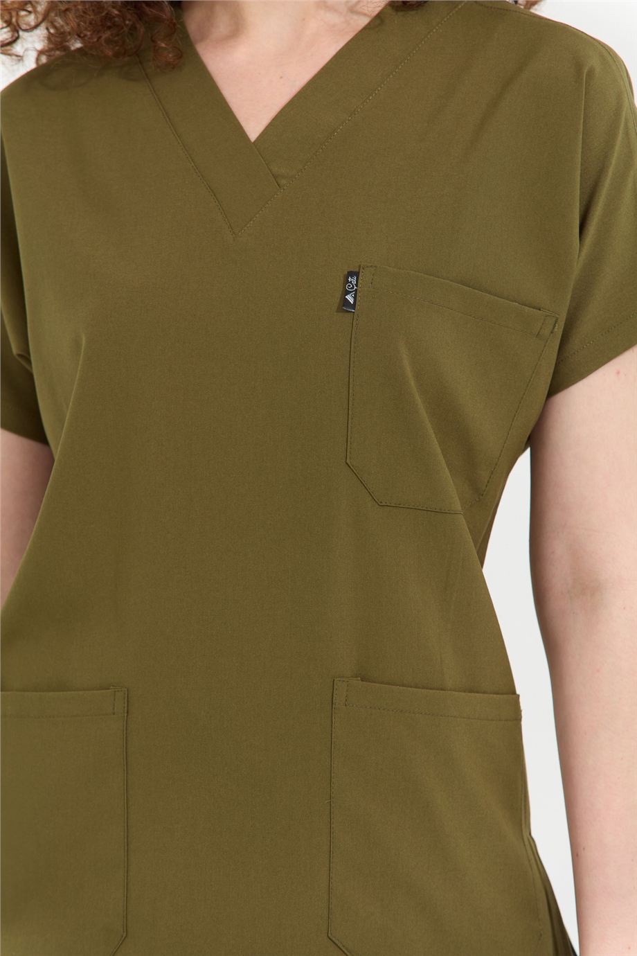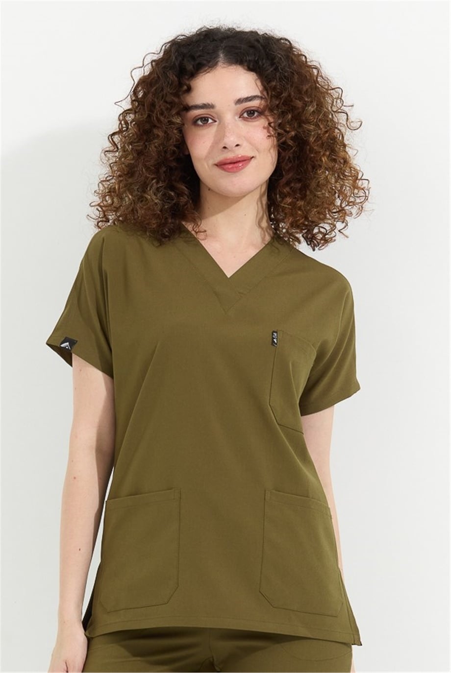 Happiness Spaniard - Likralı Doktor Hemşire Scrubs Tek Üst Cerrahi Forma (KADIN), Haki (CATI20916)