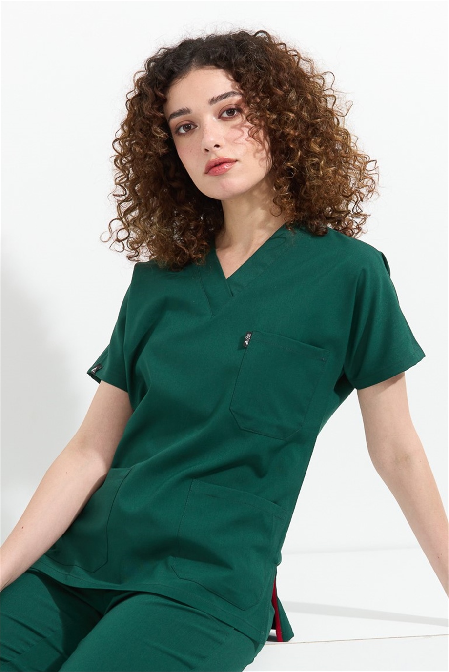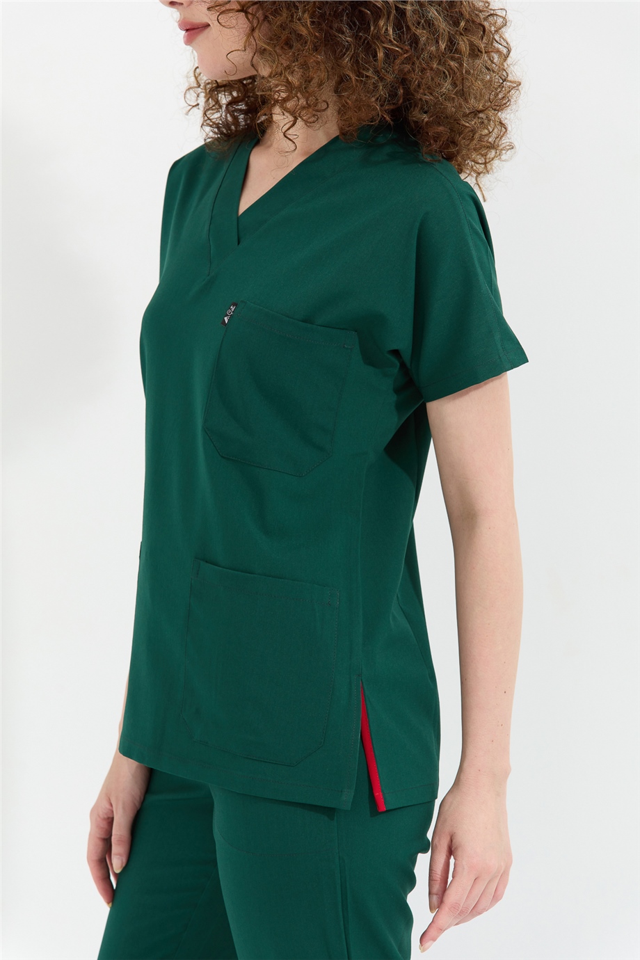 Happiness Spaniard - Likralı Doktor Hemşire Scrubs Tek Üst Cerrahi Forma (KADIN), Koyu Yeşil (CATI20917)