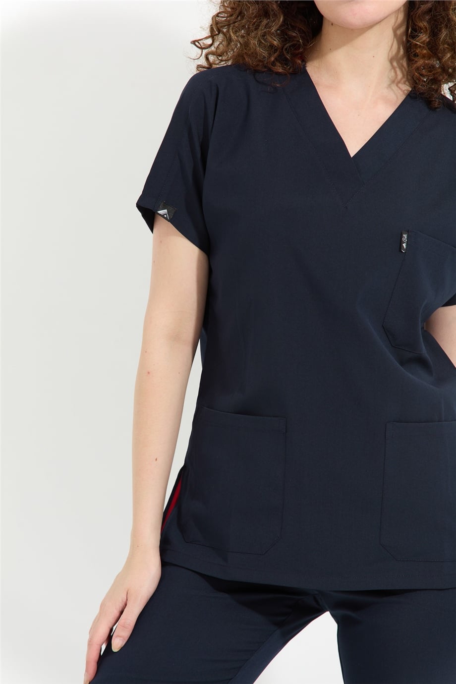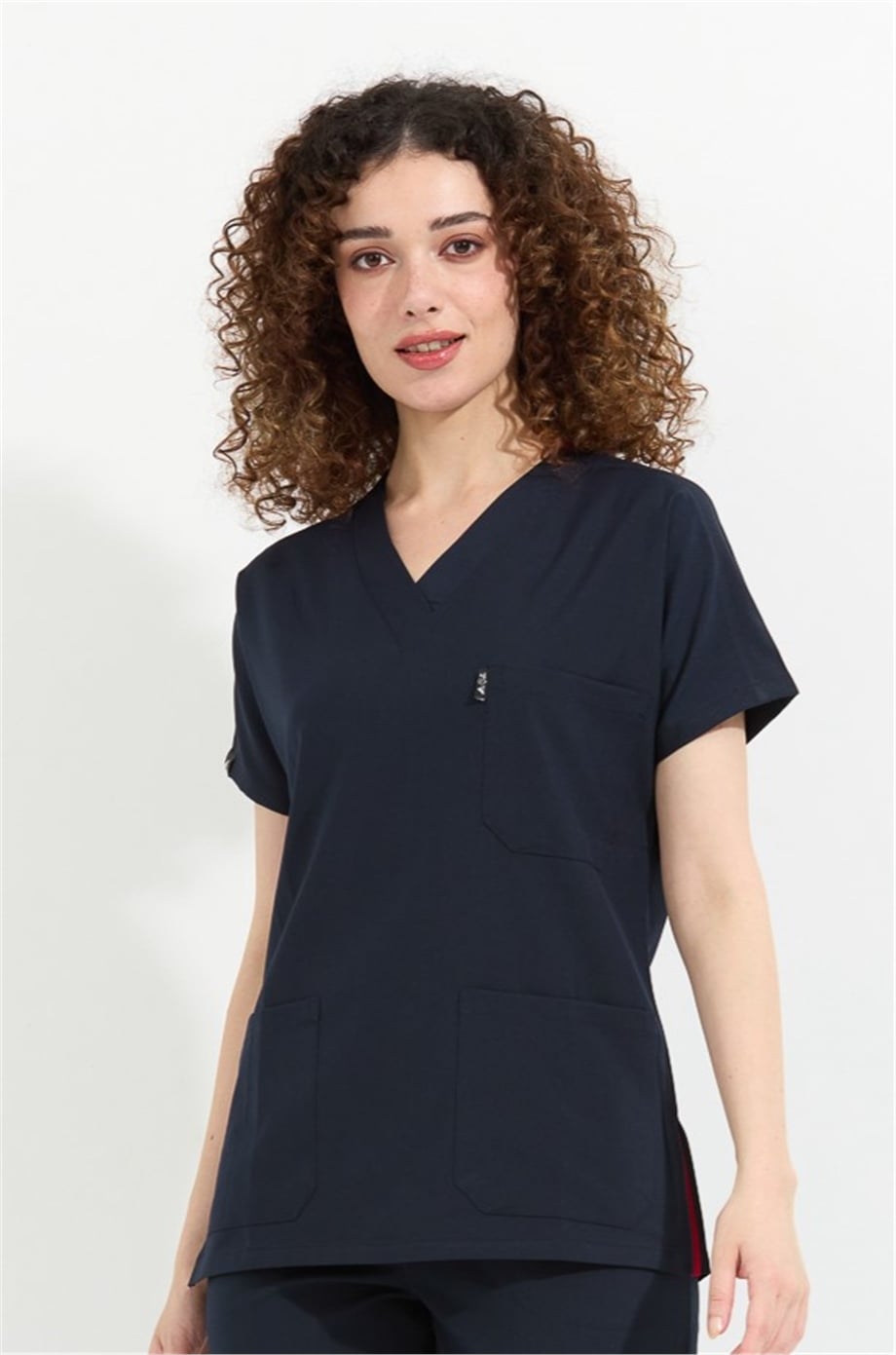 Happiness Spaniard - Likralı Doktor Hemşire Scrubs Tek Üst Cerrahi Forma (KADIN), Lacivert (CATI20903)