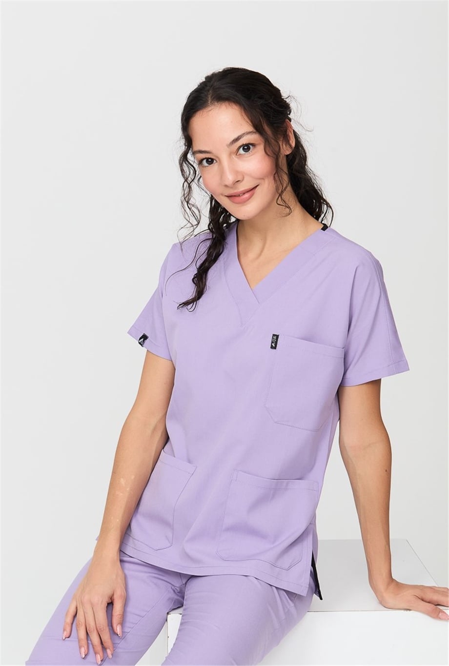 Happiness Spaniard - Likralı Doktor Hemşire Scrubs Tek Üst Cerrahi Forma (KADIN), Lila (CATI20931)