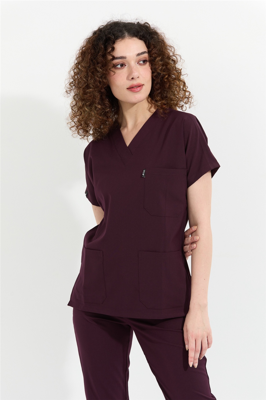 Happiness Spaniard - Likralı Doktor Hemşire Scrubs Tek Üst Cerrahi Forma (KADIN), Mürdüm (CATI20904)