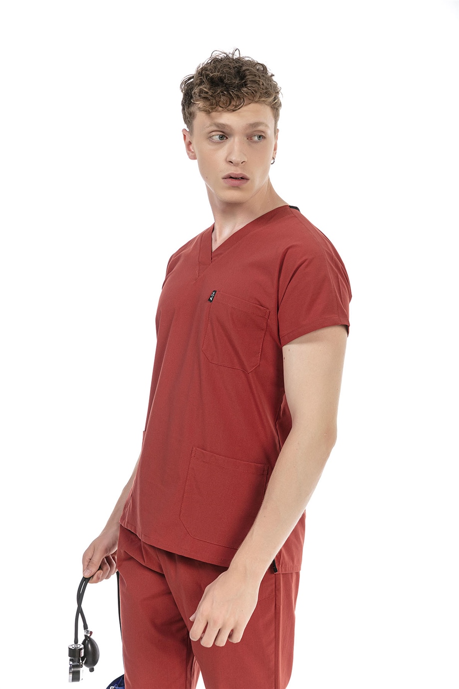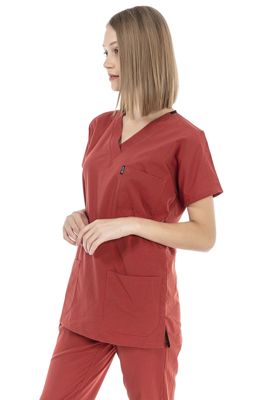 UltraLycra Basic - Likralı Doktor Hemşire Scrubs Tek Üst Cerrahi Forma (UNISEX), Kiremit (CATI25015)