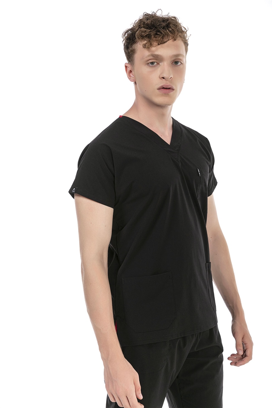 UltraLycra Basic - Likralı Doktor Hemşire Scrubs Tek Üst Cerrahi Forma (UNISEX), Siyah (CATI25002)
