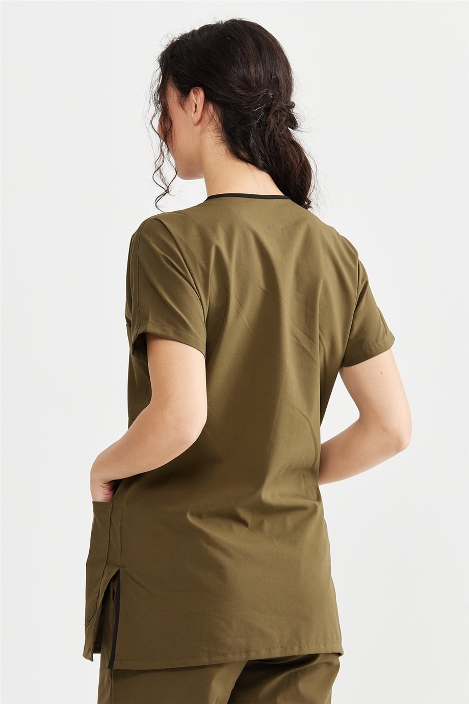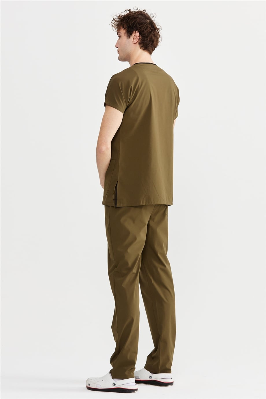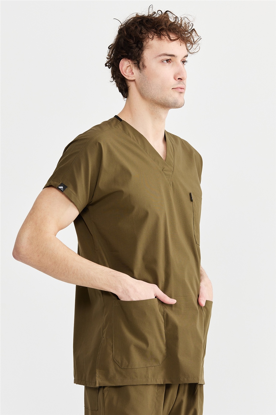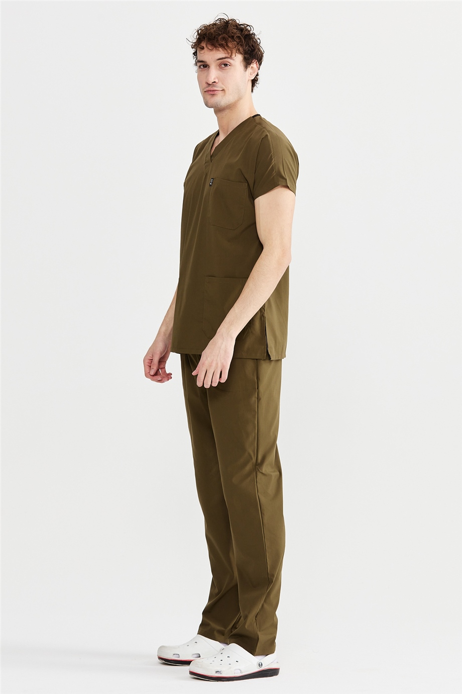 UltraLycra Basic - Likralı Doktor Hemşire Forma Takımı Scrubs Üniforma Cerrahi Takım (UNISEX), Haki (CATI15016)
