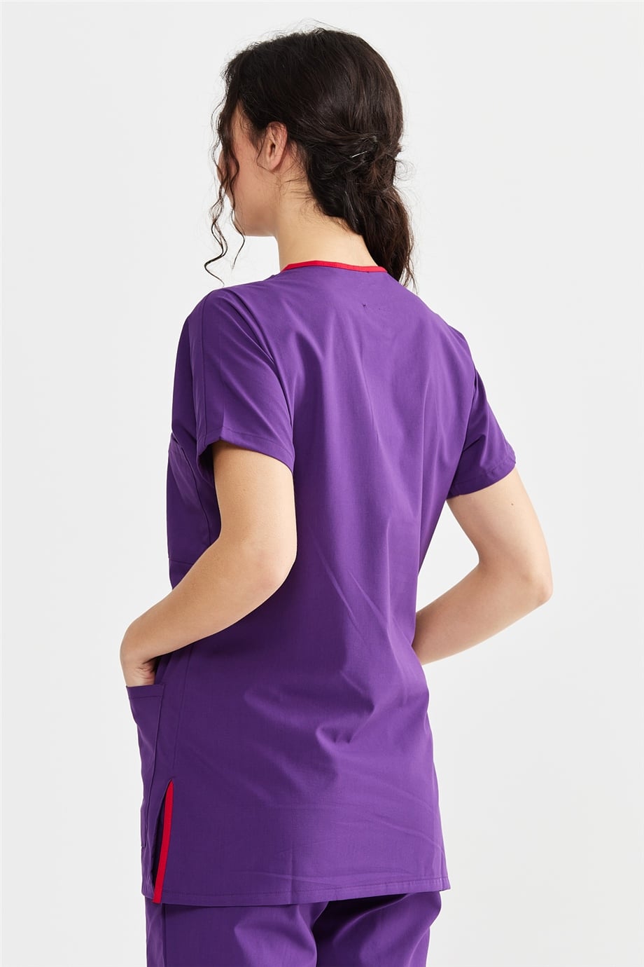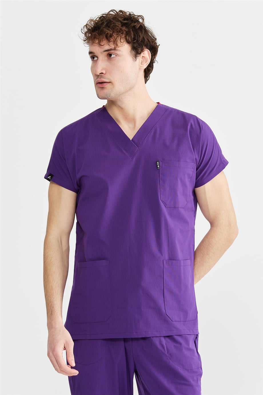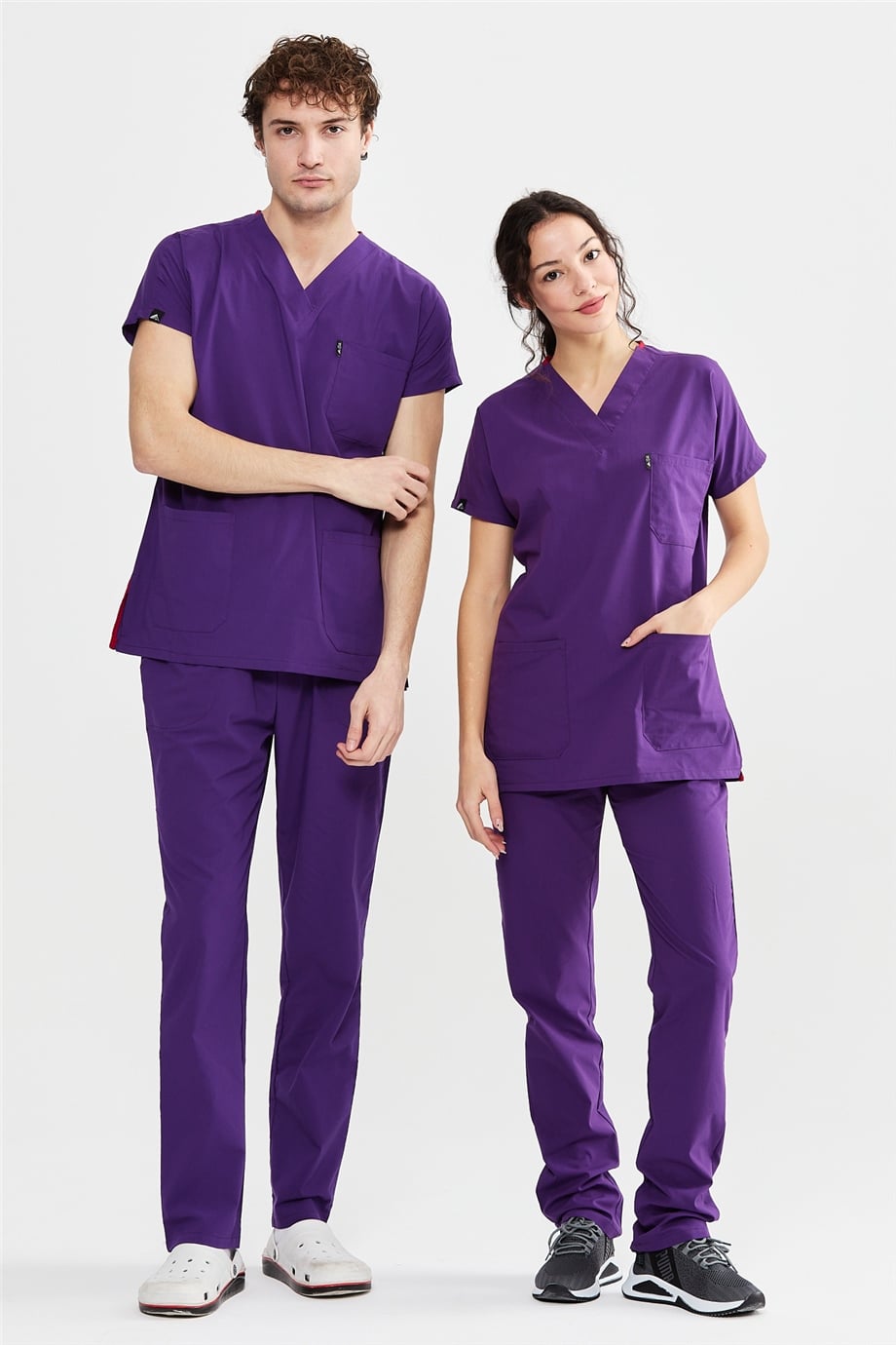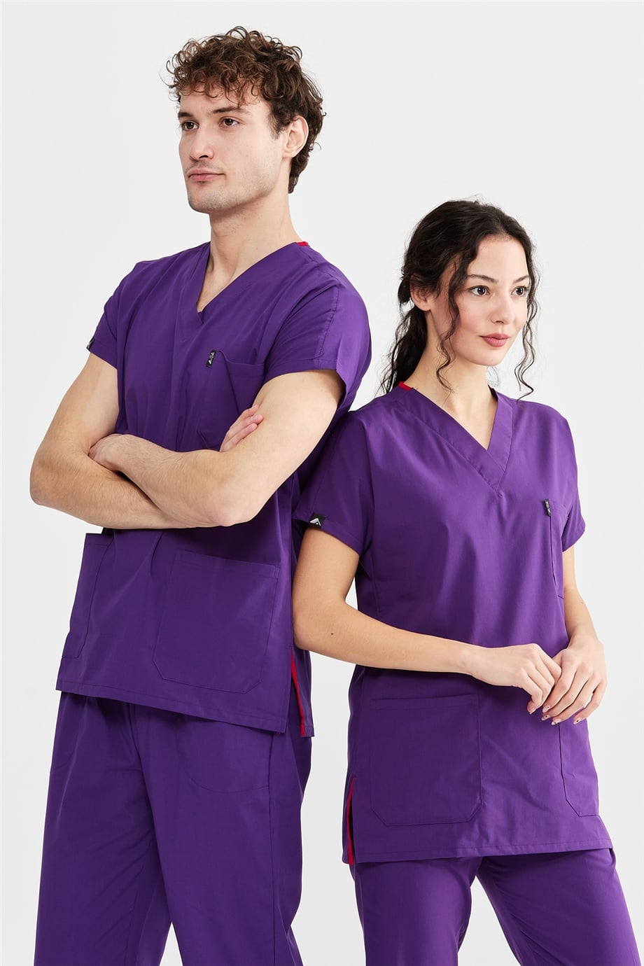 UltraLycra Basic - Likralı Doktor Hemşire Forma Takımı Scrubs Üniforma Cerrahi Takım (UNISEX), Mor (CATI15012)