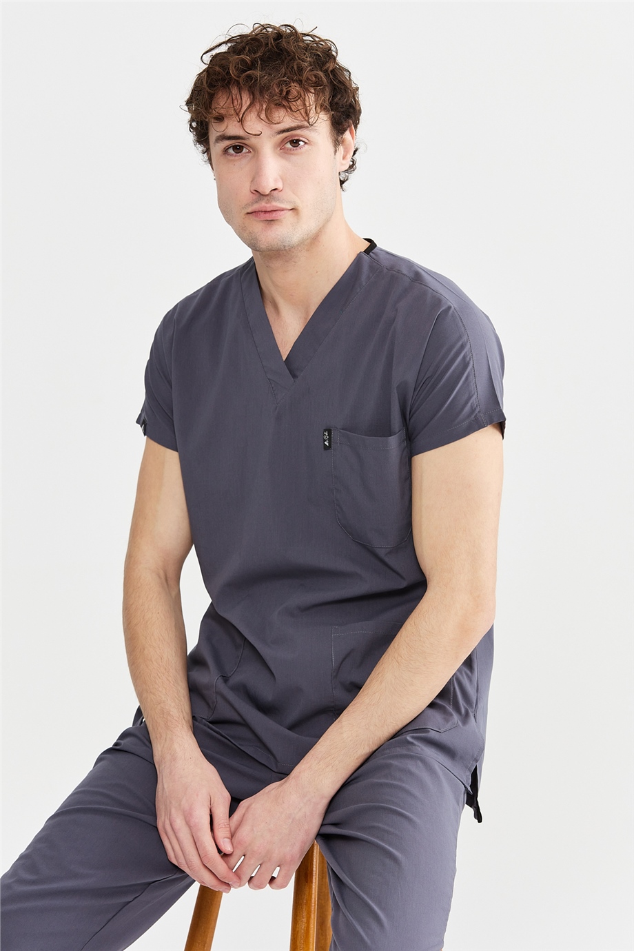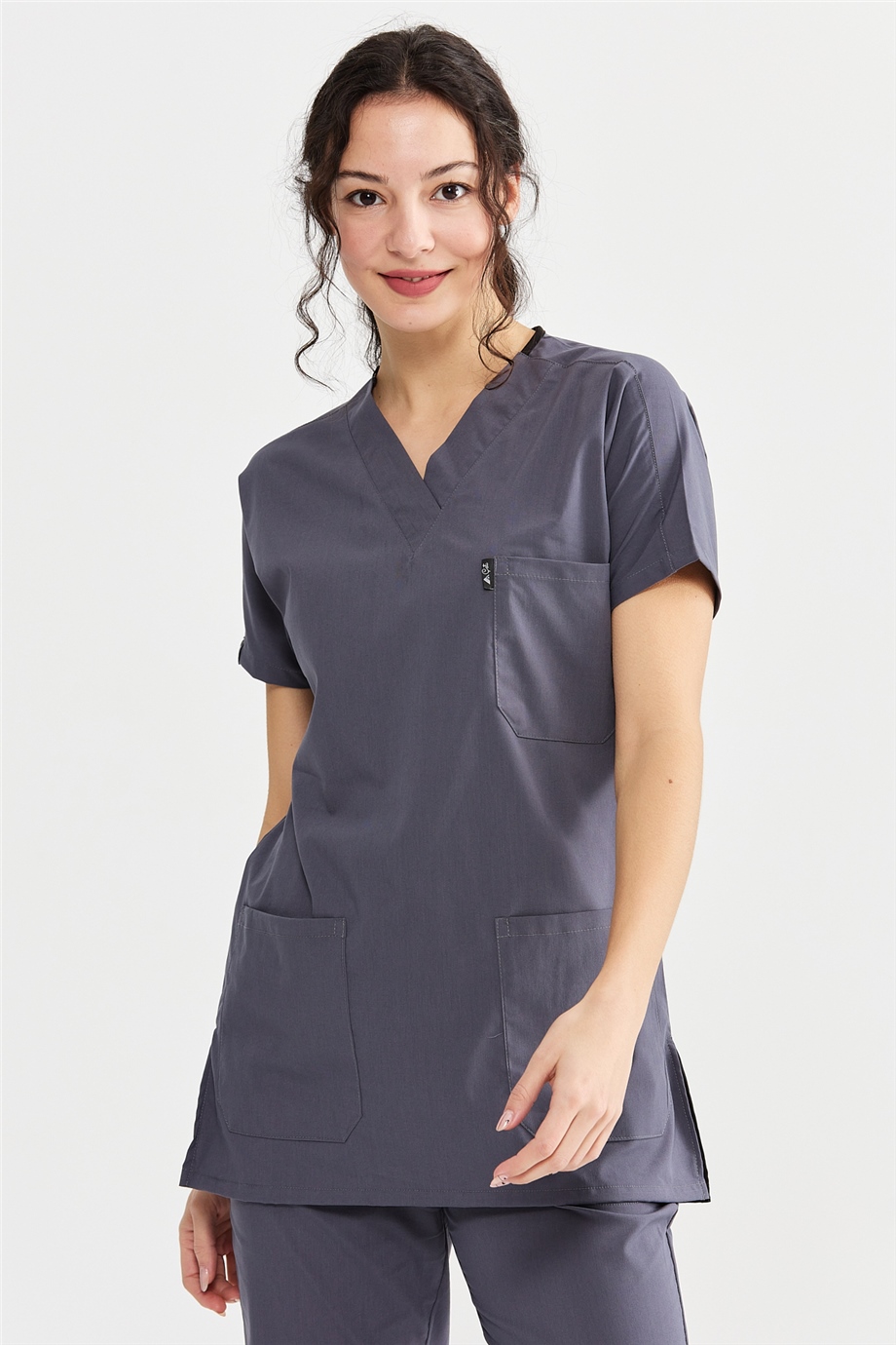 UltraLycra Basic - Likralı Doktor Hemşire Scrubs Tek Üst Cerrahi Forma (UNISEX), Asfalt (CATI25025)