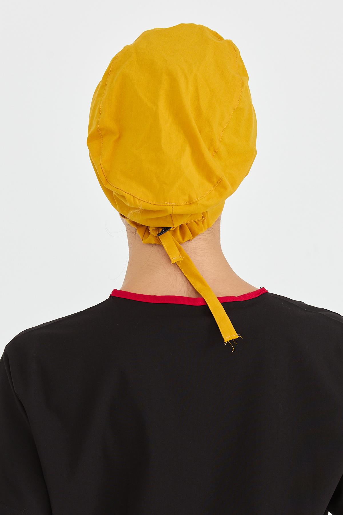 Likralı Doktor Hemşire Cerrahi Bone Aşçı Bonesi İş Bandanası, Safran (CATI45019)