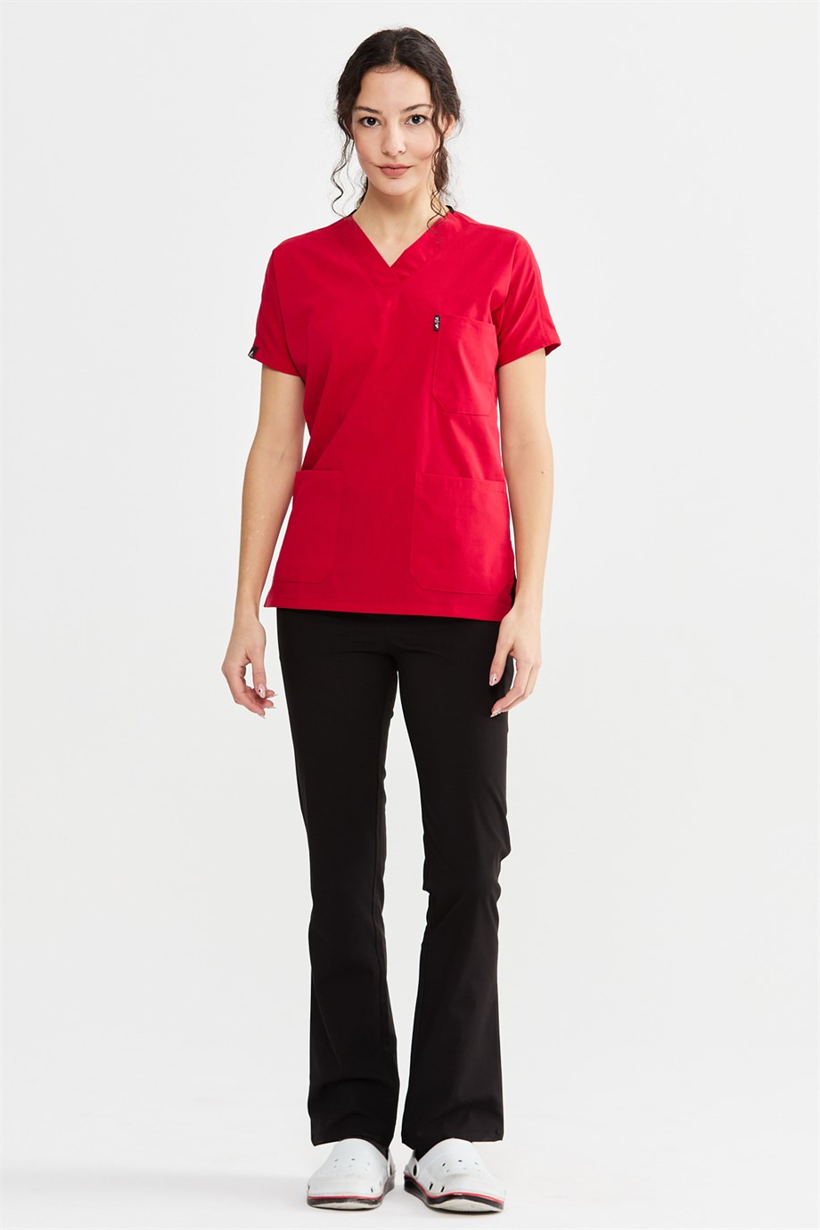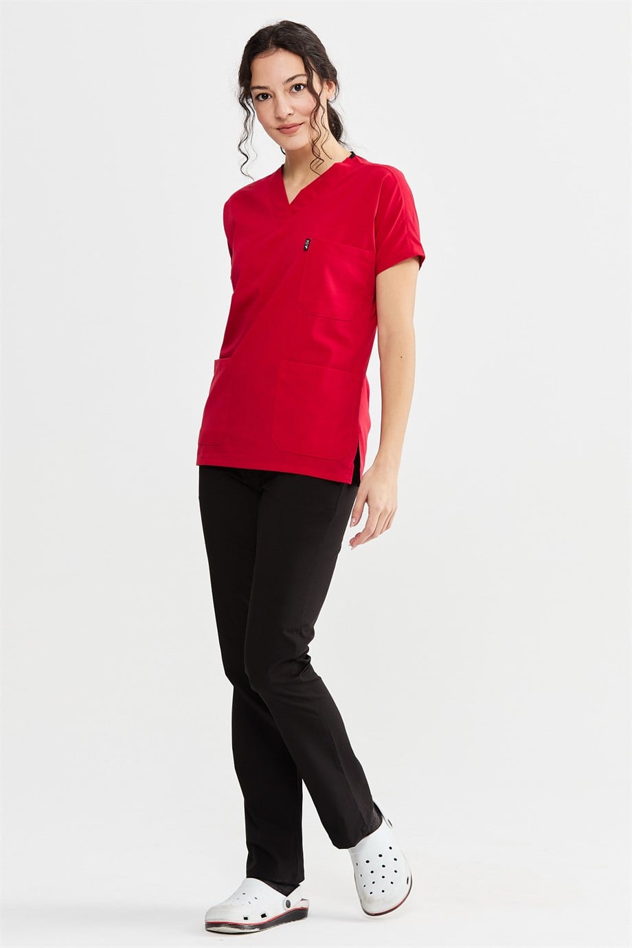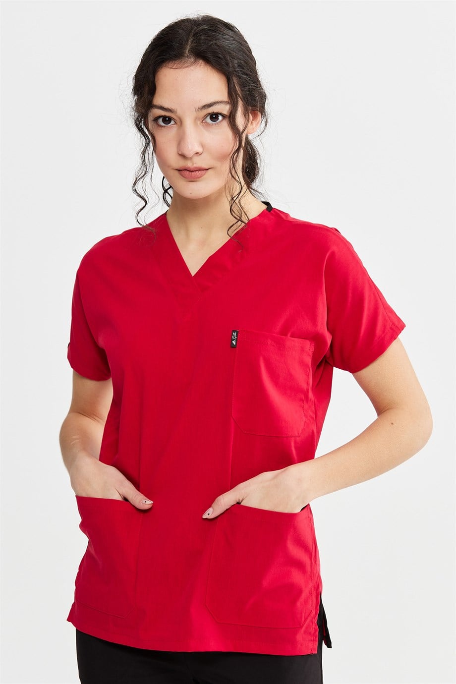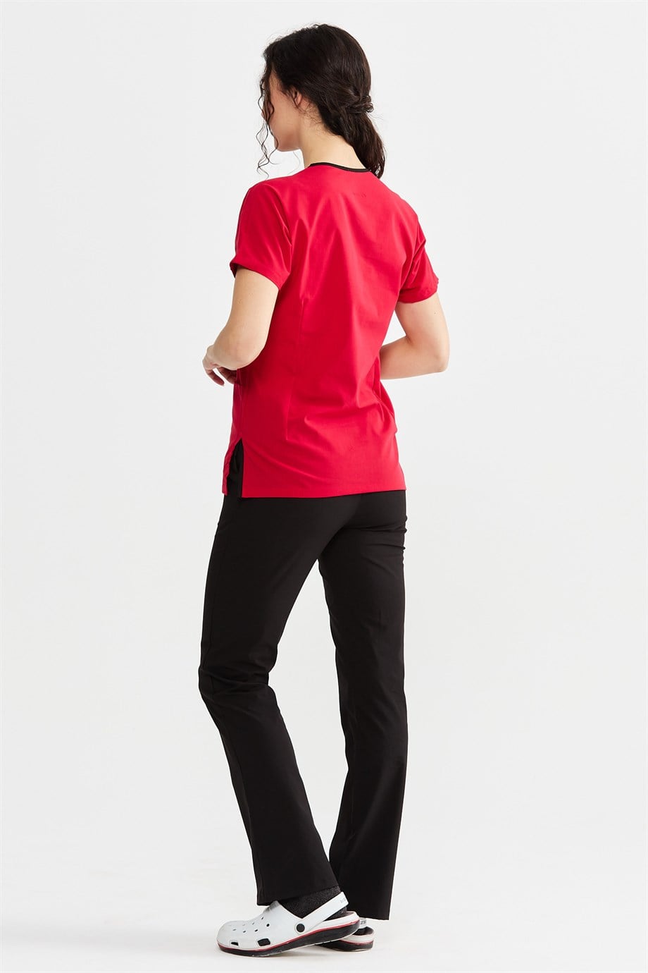UltraLycra Harmony/Spaniard - Likralı Doktor Hemşire Forma Takımı Scrubs Üniforma Cerrahi Takım (KADIN), Kırmızı/Siyah (CATI1060602)