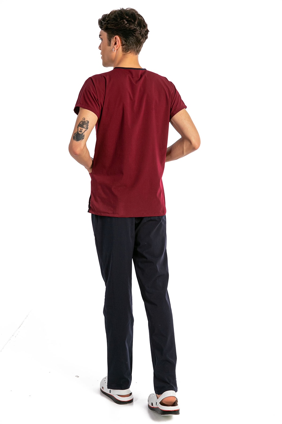 • Erkek modelimizin boyu 185 cm olup, ölçüleri 97-71-91' dir ve üzerindeki ürün M bedendir.